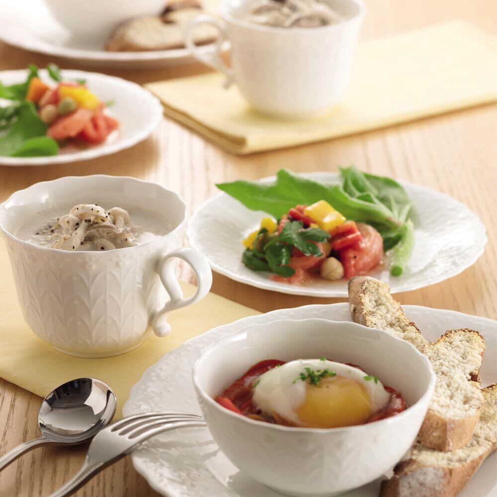 1977年発売以来のロングセラー。野に咲く小花の優美な曲線をイメージしたレリーフと優しく手に馴染む形が魅力の「食卓の白い宝石」です。 ボーンチャイナ ブランド食器の美しさを最大限に活かしたシルキーホワイトは、グッドデザイン賞・ロングライフデザイン賞を受賞。日常使いに最適な器です。