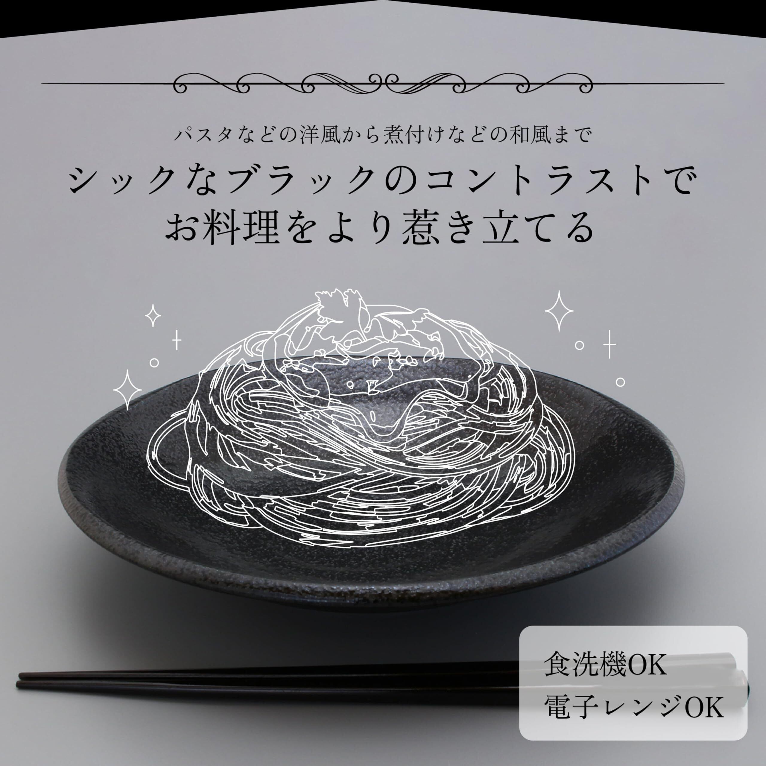 美濃焼 黒耀 パスタ皿 カレー皿 中皿 直径約21cm 電子レンジ 食洗機対応 シンプル 無地 ブラック 日本製 133-80902
