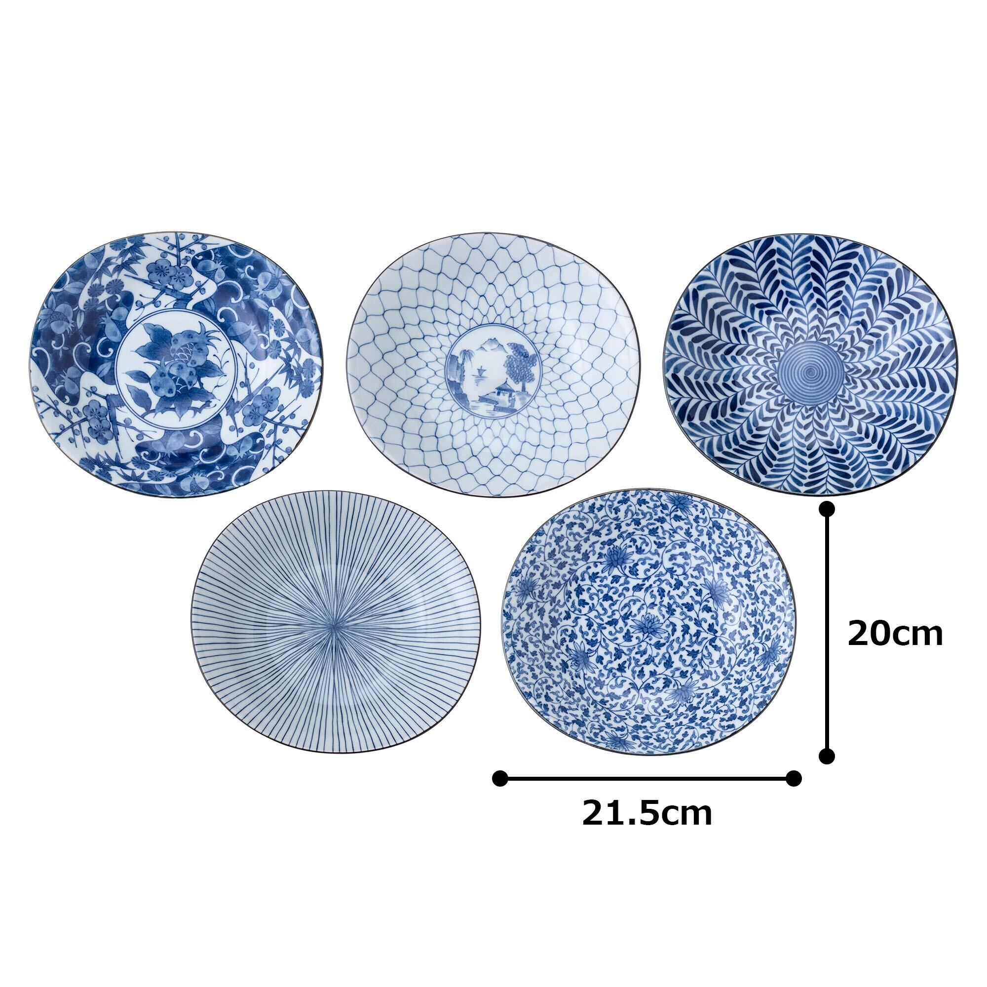 西海陶器 清秀窯 楕円 カレー皿 和風 パスタ皿 煮物鉢 直径約22×深さ約20cm 5柄 食器セット 反鉢藍 絵変り ギフト箱入 結婚祝い 和柄 食器 プレゼント 敬老の日 電子レンジ 食洗機対応 和食器 日本製 31302