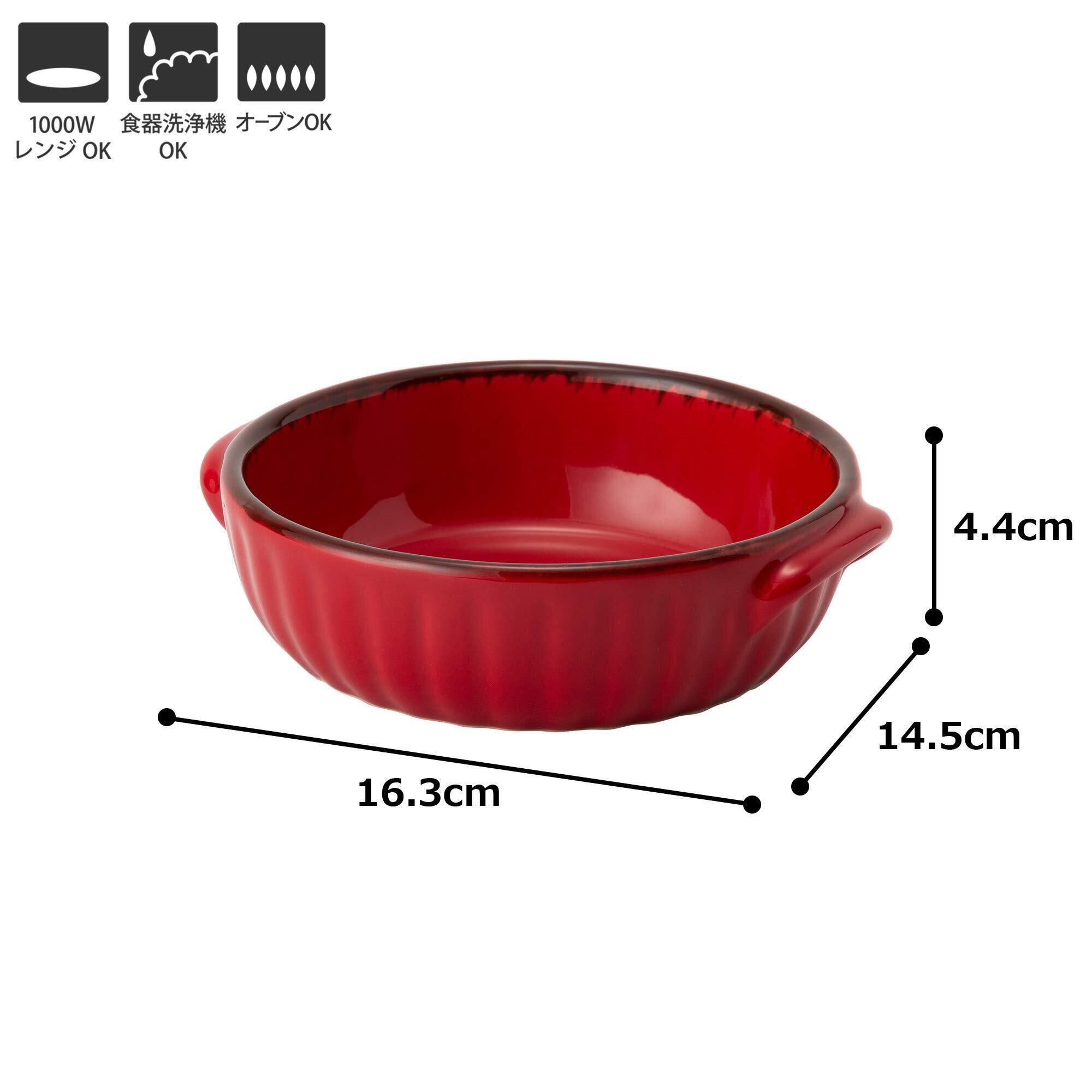 TAMAKI グラタン皿 ギャザー レッド 直径16×奥行14.5×高さ4.5cm 480ml 電子レンジ・食洗機・オーブン対応 T-783696