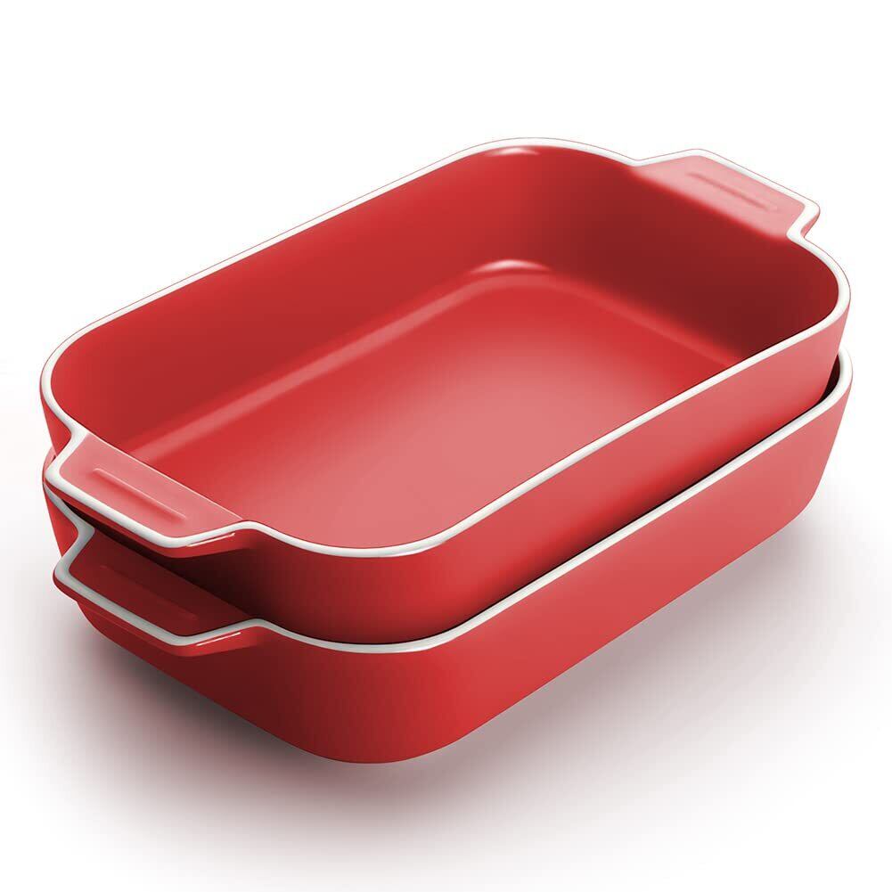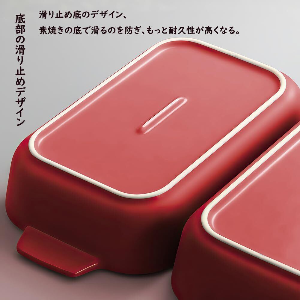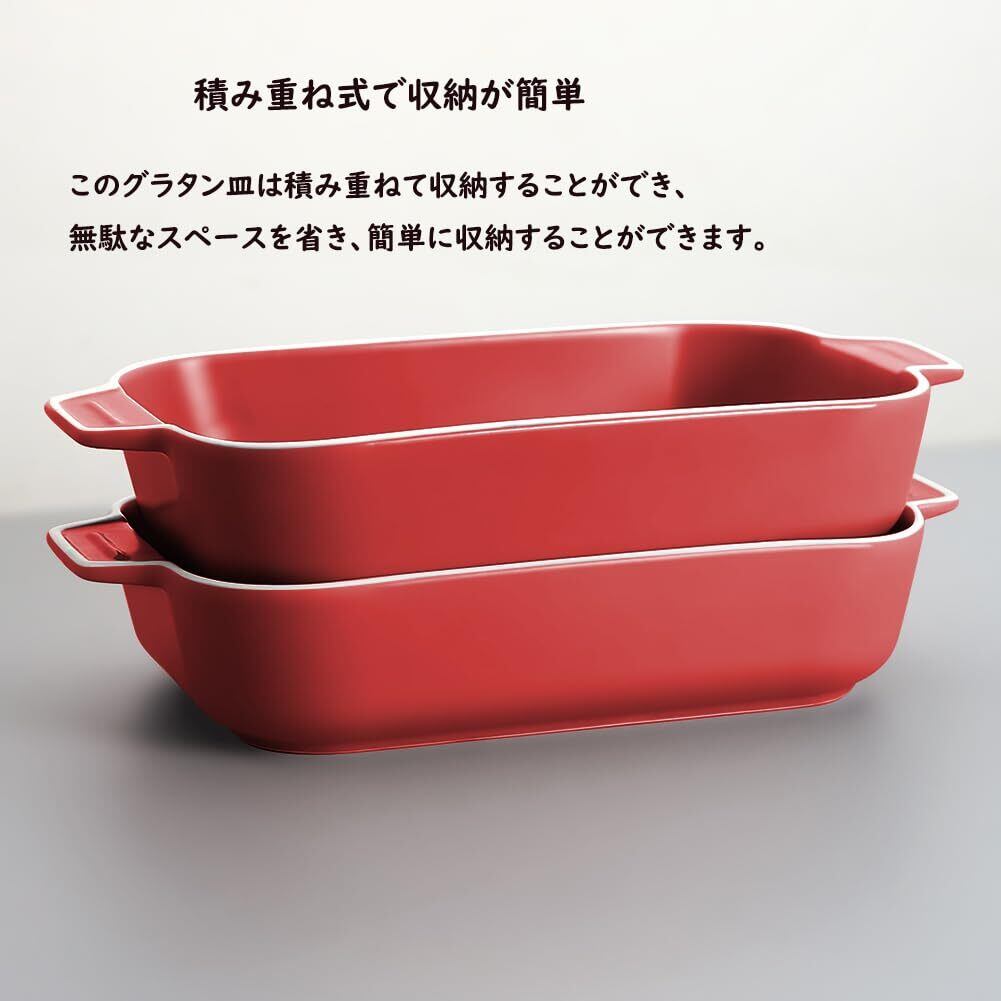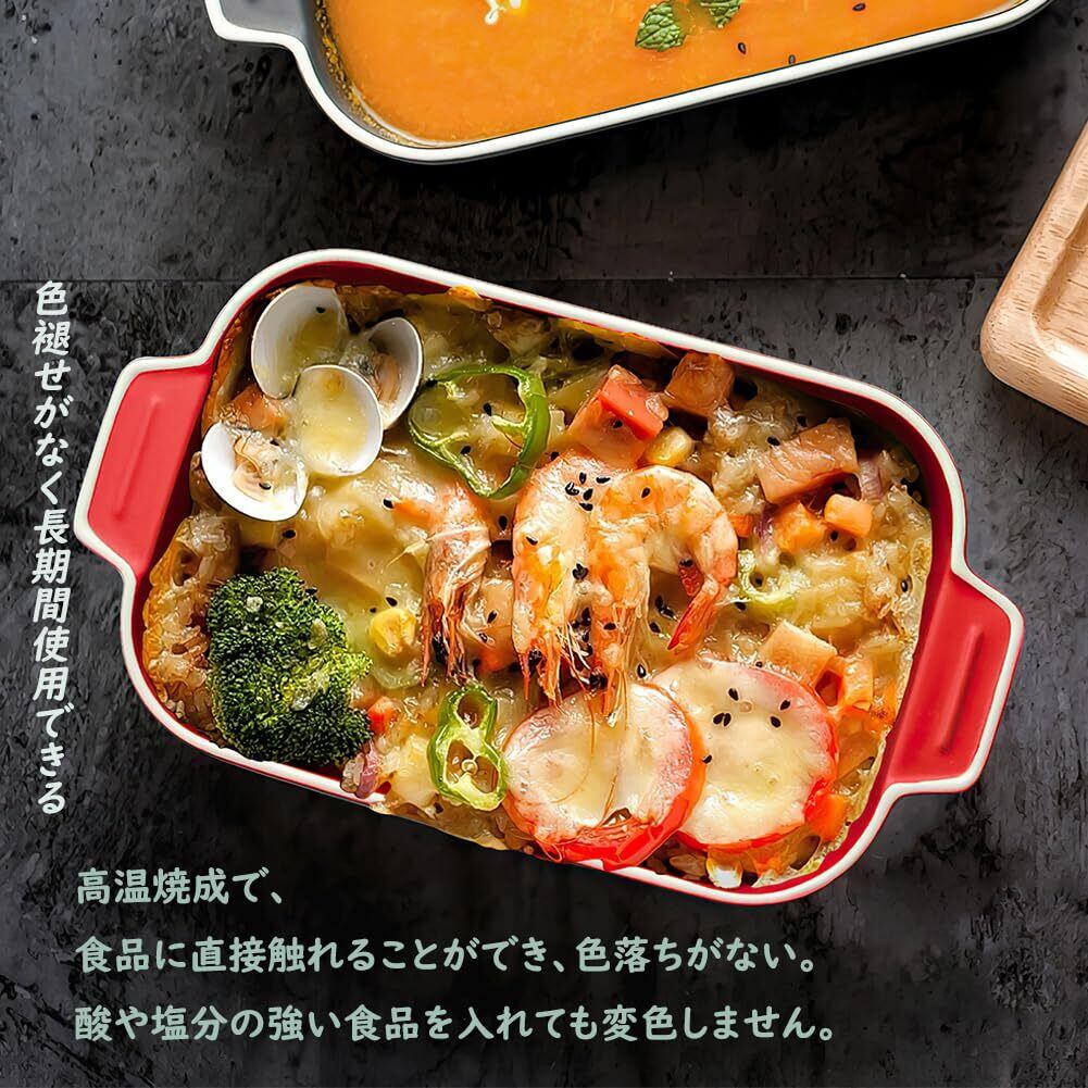 YFWOOD 耐熱皿 グラタン皿 2個セット 650ml スクエア レッド 27cm 電子レンジ/食洗機/オーブン対応 大容量 パスタ サラダ 業務用 家庭用 多機能皿