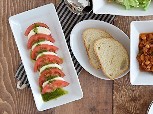 長方形のハーフタイプは、レストランの様に前菜皿として使ったり、小ぶりなオードブルを並べるおつまみ皿にするとおしゃれ。