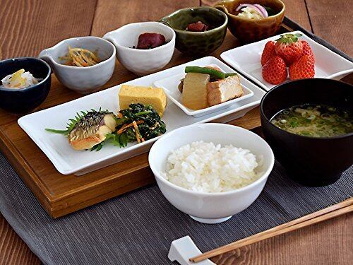 おかずやサラダを盛り合わせて朝食のワンプレートにも活躍しそうな角皿です。 もちろん焼き魚や卵焼きにもオススメ。