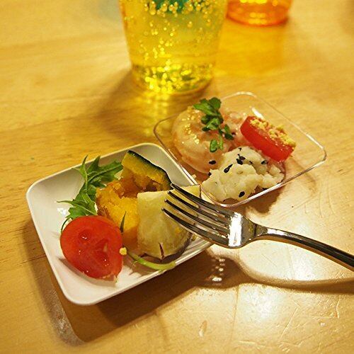 ミニプレートクリア12枚とホワイト12枚、ミニフォーク24本のセットです。