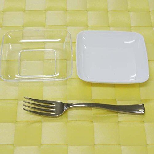 【在庫セール】モザイク アペタイザーセット ミニプレート(ホワイト・クリア)x各12枚、ミニフォークx