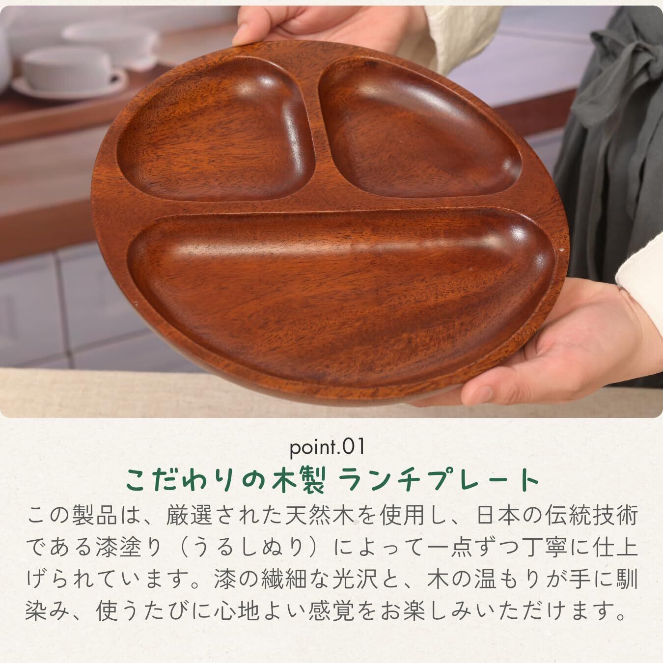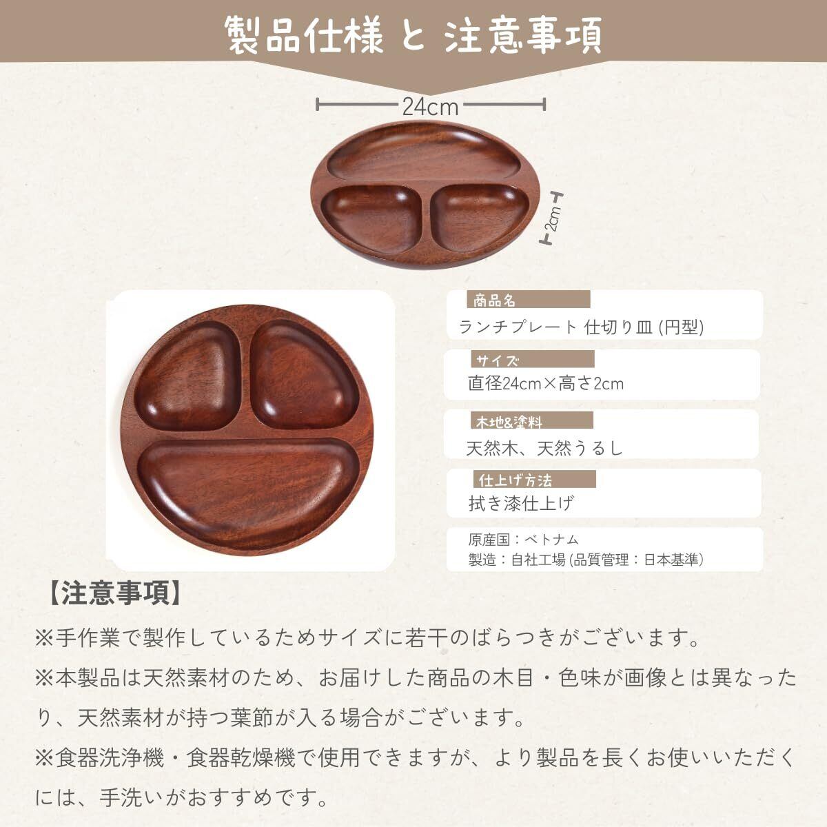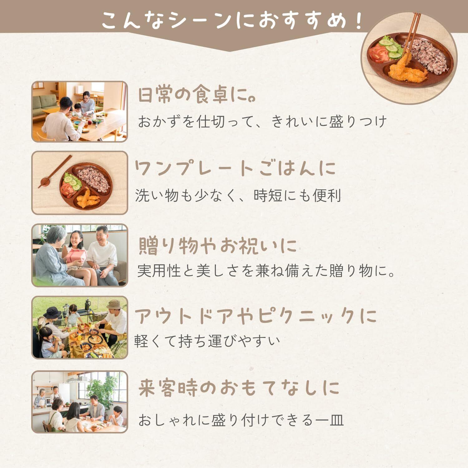 仕切り皿 ランチプレート (木製漆塗り/直径24cm) プレート 皿|おしゃれなワンプレートに最適 TBH-101