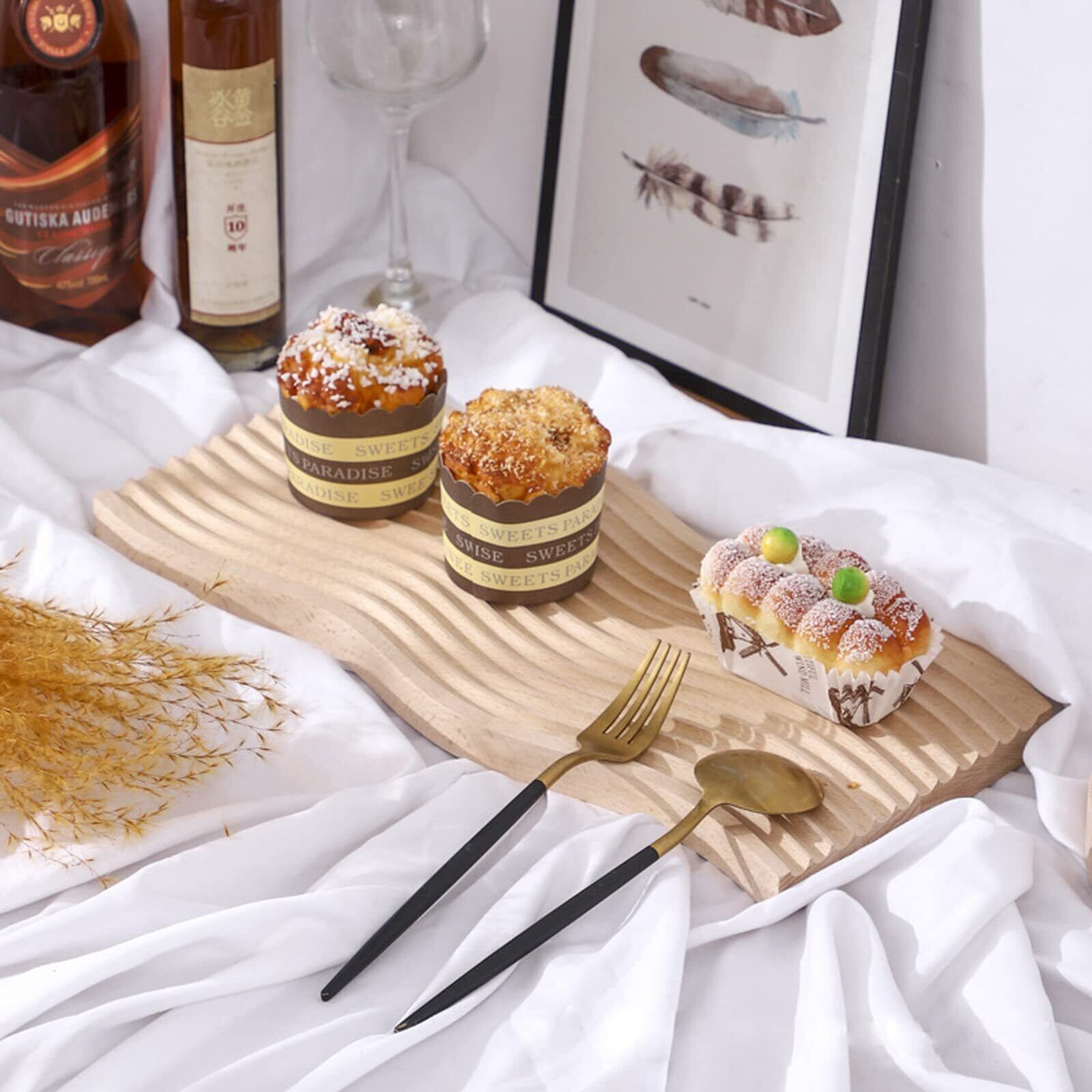 Enkrio 木製 トレー サービングトレイ ウッドプレート コーヒーテーブル装飾 トレイパンプレート フルーツサラダ大皿 パン 皿 シャルキュチュリーボード 耐油紙50枚付き (ウェーブ型)
