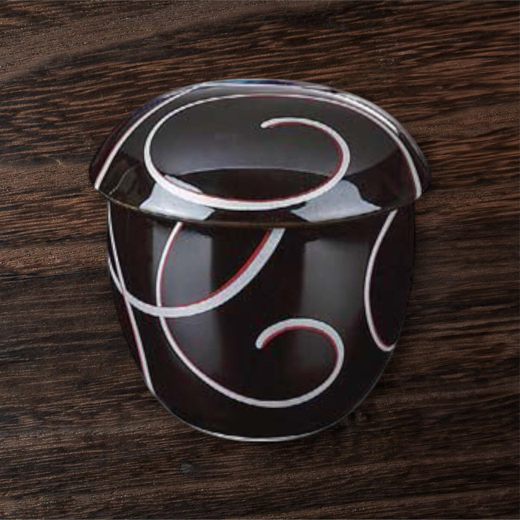 匠美風 有田焼 8cm 蒸し碗 黒釉赤ライン丸 蒸し碗 日本製