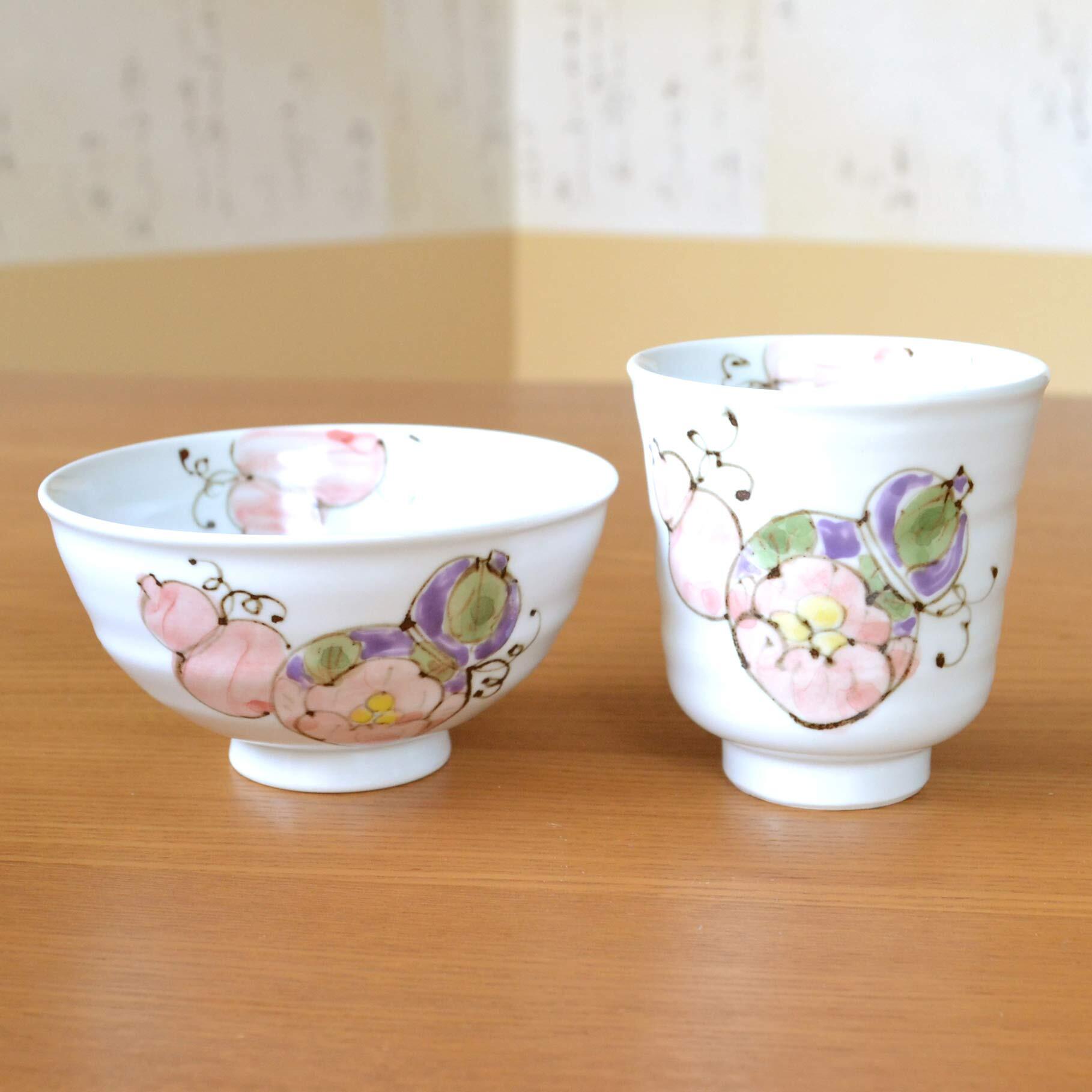サイズ: (飯碗)径11㎝×高さ5.9㎝ / (湯呑み)径7.8cm×高さ8.2cm