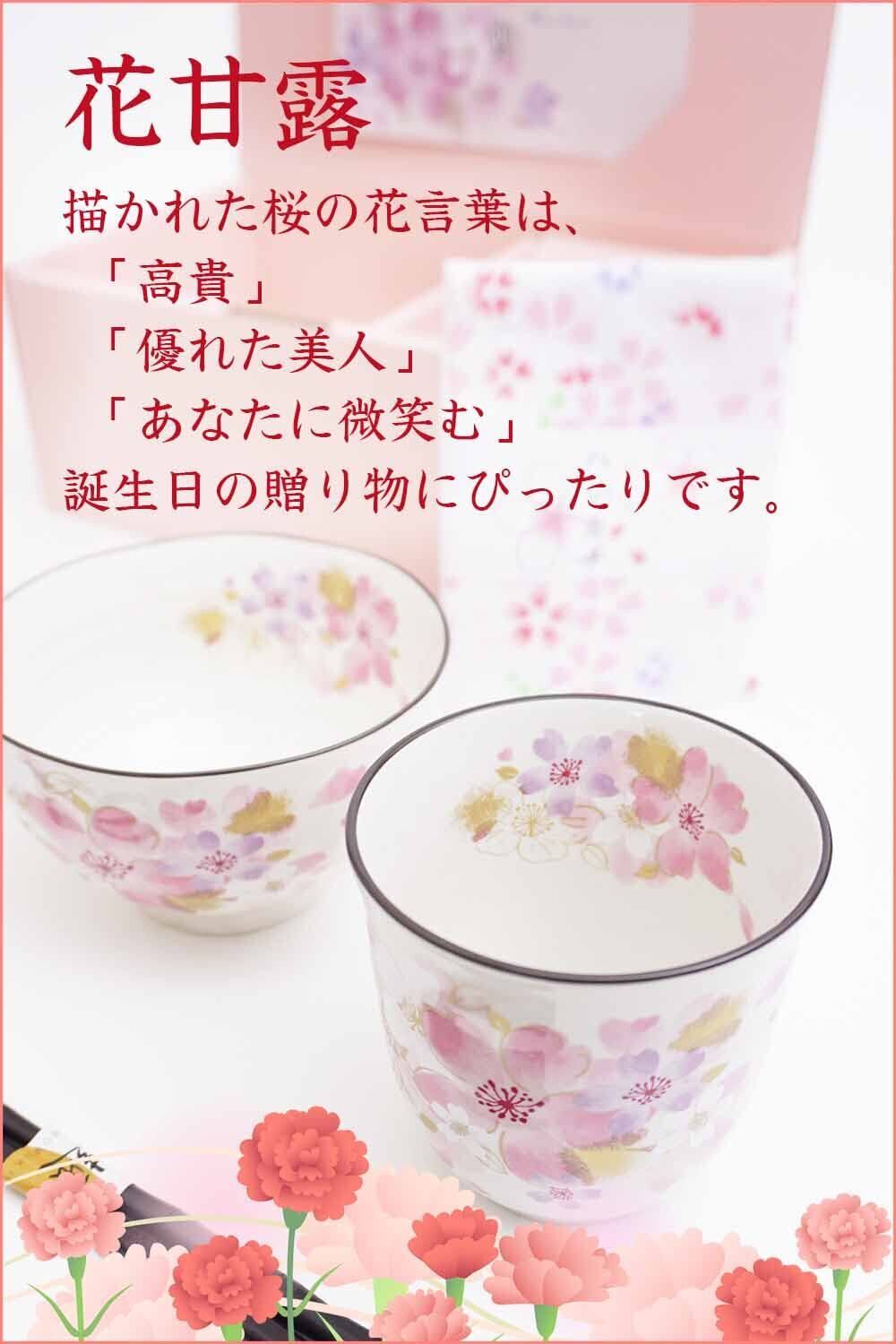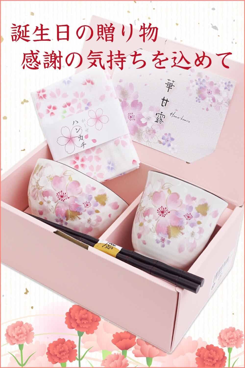 誕生日 プレゼント 人気 湯呑 茶碗 美濃焼 ギフト包装済み 華甘露飯椀湯呑 ハンカチ付き 箸付き