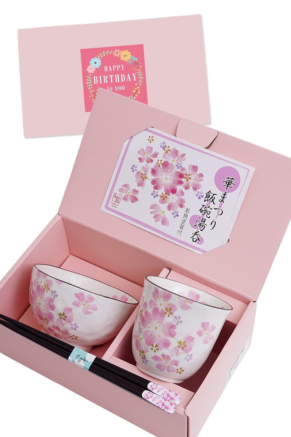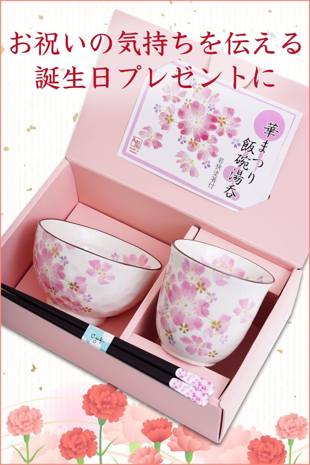 【新着商品】誕生日 プレゼント 湯呑 茶碗 美濃焼 ギフト包装済み 日本製 華まつり飯椀湯呑 天宝箸付き (メッセージカードB)