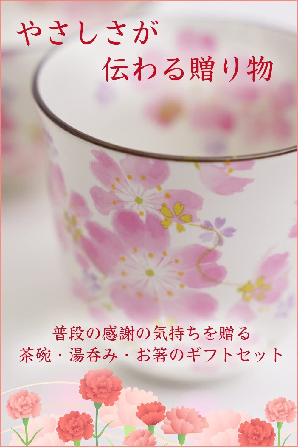 誕生日 プレゼント 湯呑 茶碗 美濃焼 ギフト包装済み 日本製 華まつり飯椀湯呑 天宝箸付き (メッセージカードB)