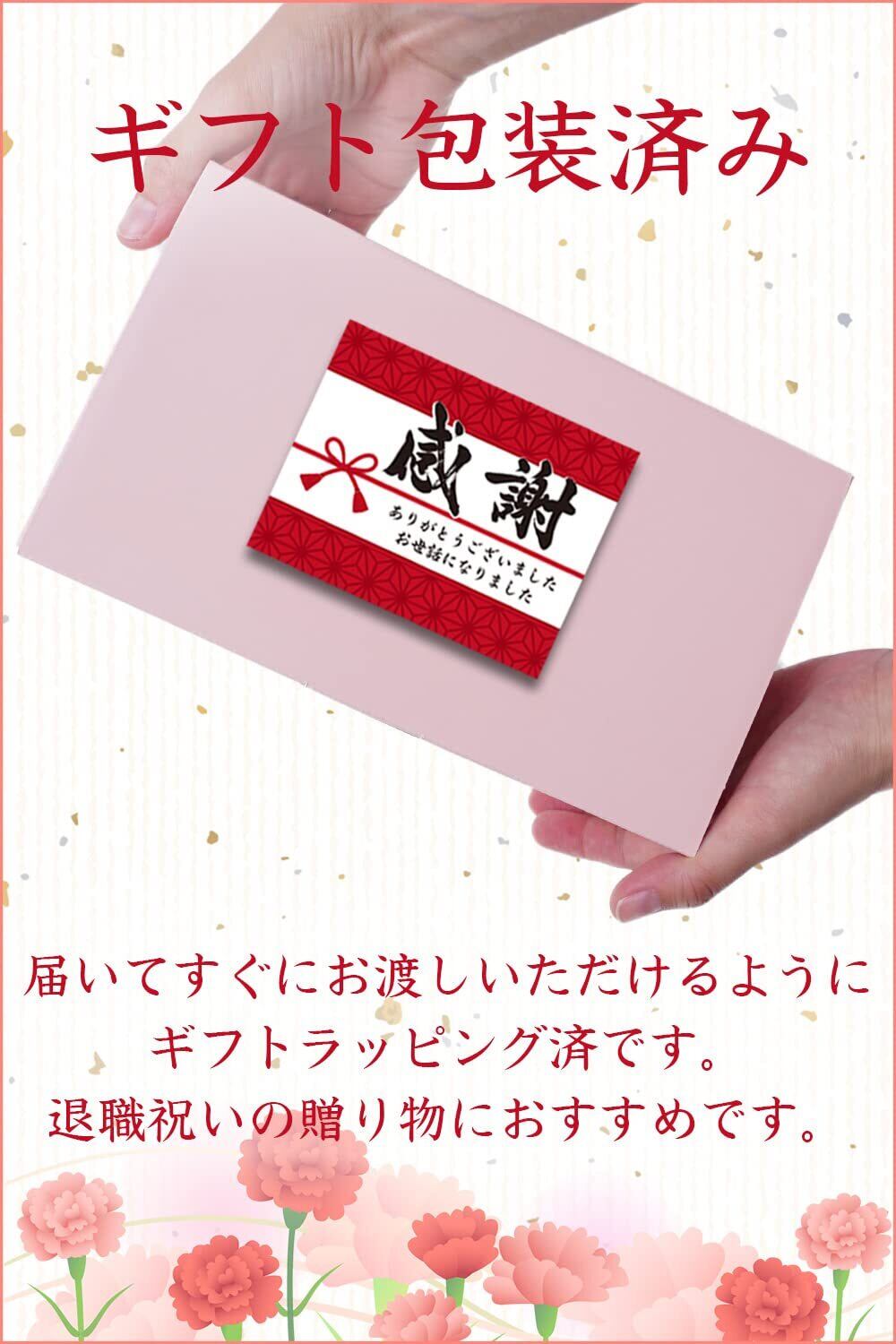 感謝の気持ちが伝わるメッセージカード付きです。そのままお渡しできるギフト包装済みです。