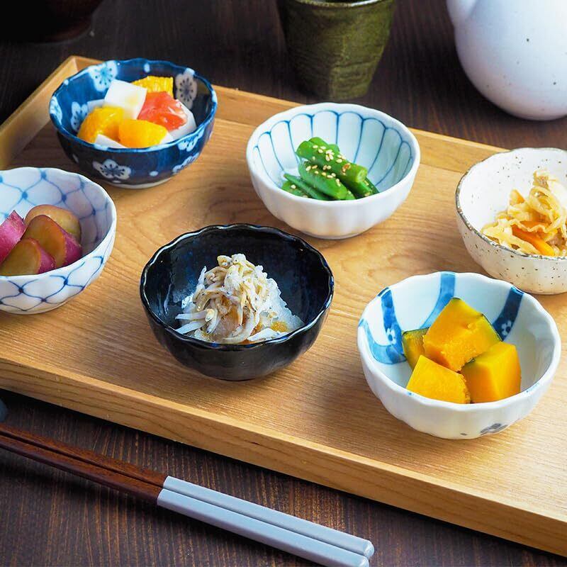 シンプルな形状に、様々な和柄、色が施された小鉢は、 それぞれを組み合わせて、使う楽しみもあります。