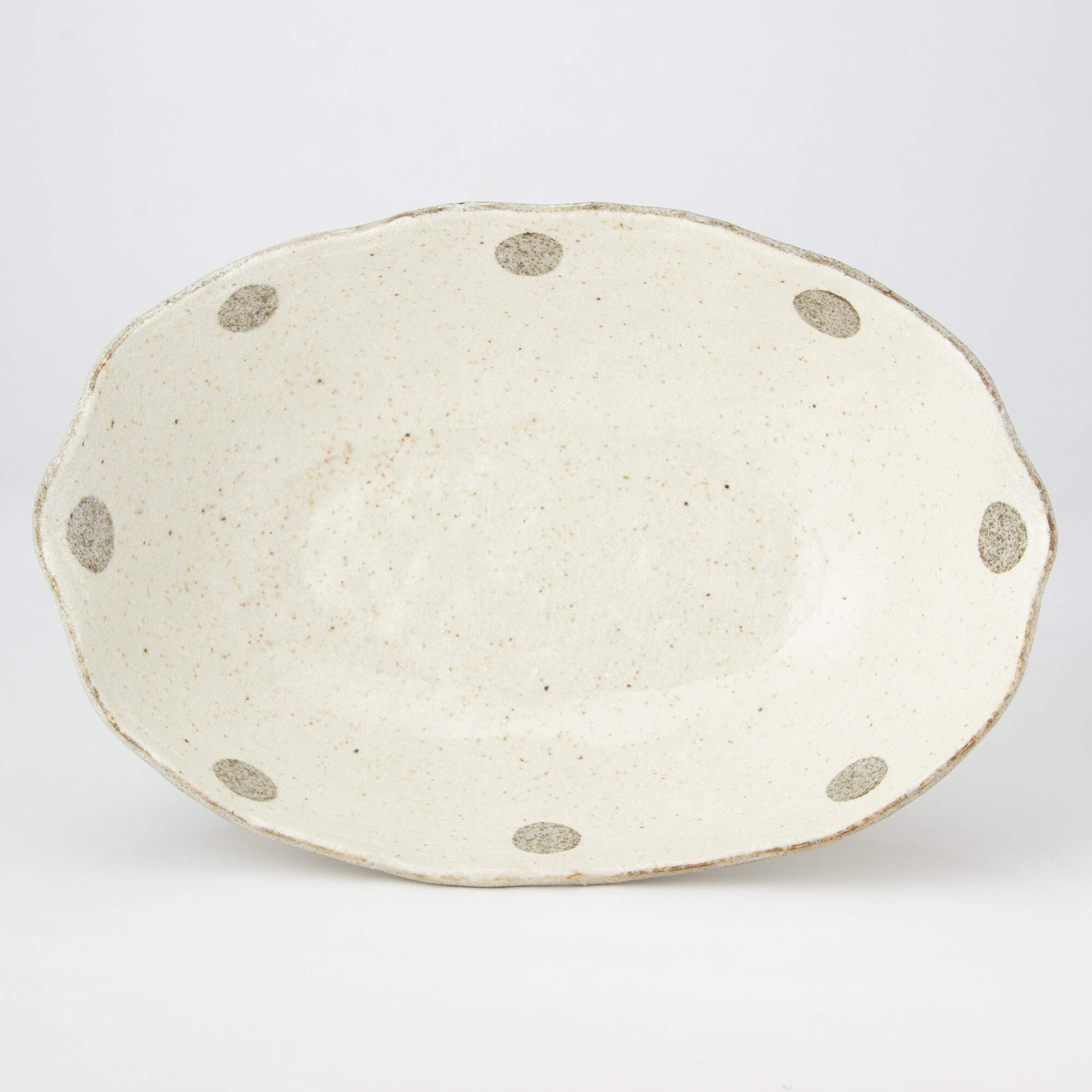 美濃焼 水玉白唐津 楕円ボール大 k52026