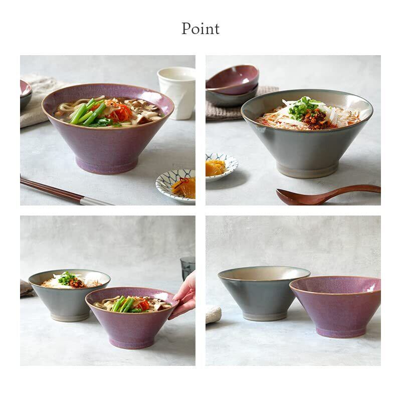 こちらは深さのある台形どんぶりで、ラーメンやうどんの麺類、丼ぶりものに最適。ほかにも大鉢や盛り鉢としても使えたり、具だくさんの料理、しっかり食べたい方にぴったりな丼ぶりです。