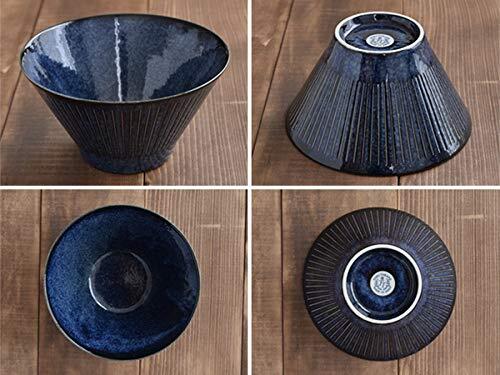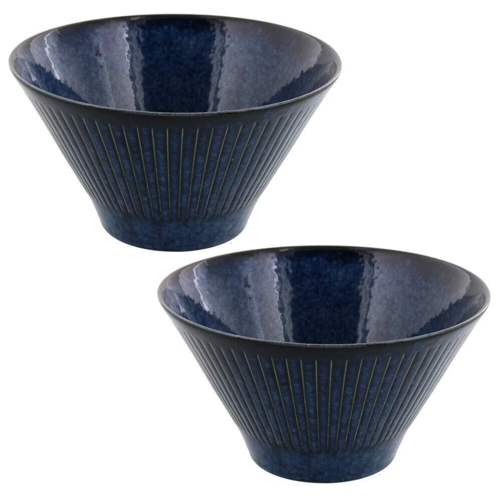 テーブルウェアイースト 和食器 台形マルチボウル(M) 彫十草 丼 麺鉢 (深海, 2個セット)