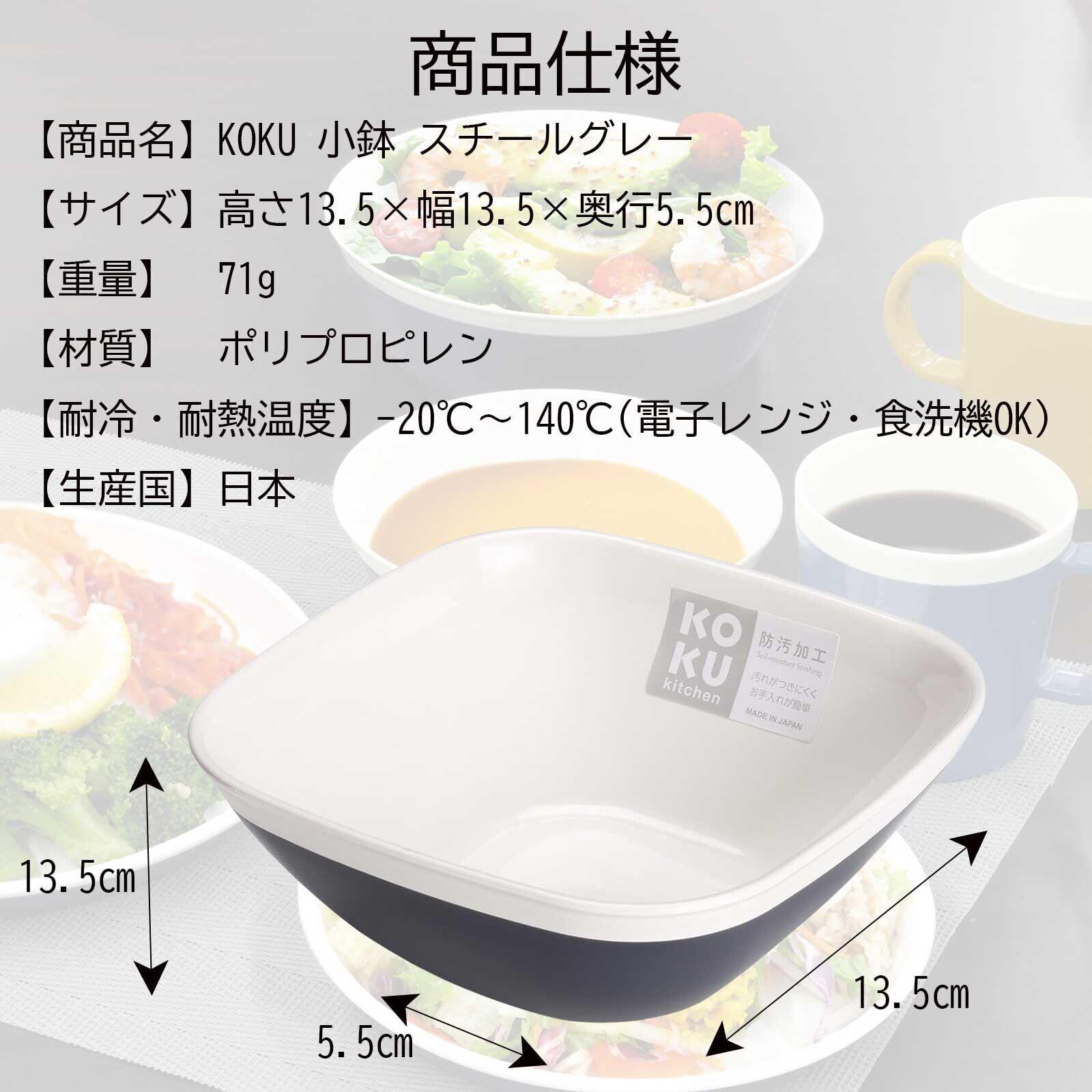 【新着商品】KOKUBO(コクボ) KOKU 小鉢 スチールグレー 角型 日本製 食洗機対応 キッチン 食器 耐熱 レンジ 対応 軽量 プラスチック 割れない おしゃれ 可愛い ボウル 小皿 レシピ 料理 梅 和食 メニュー セット 豆腐 納豆 おばんざい シンプル KC-210