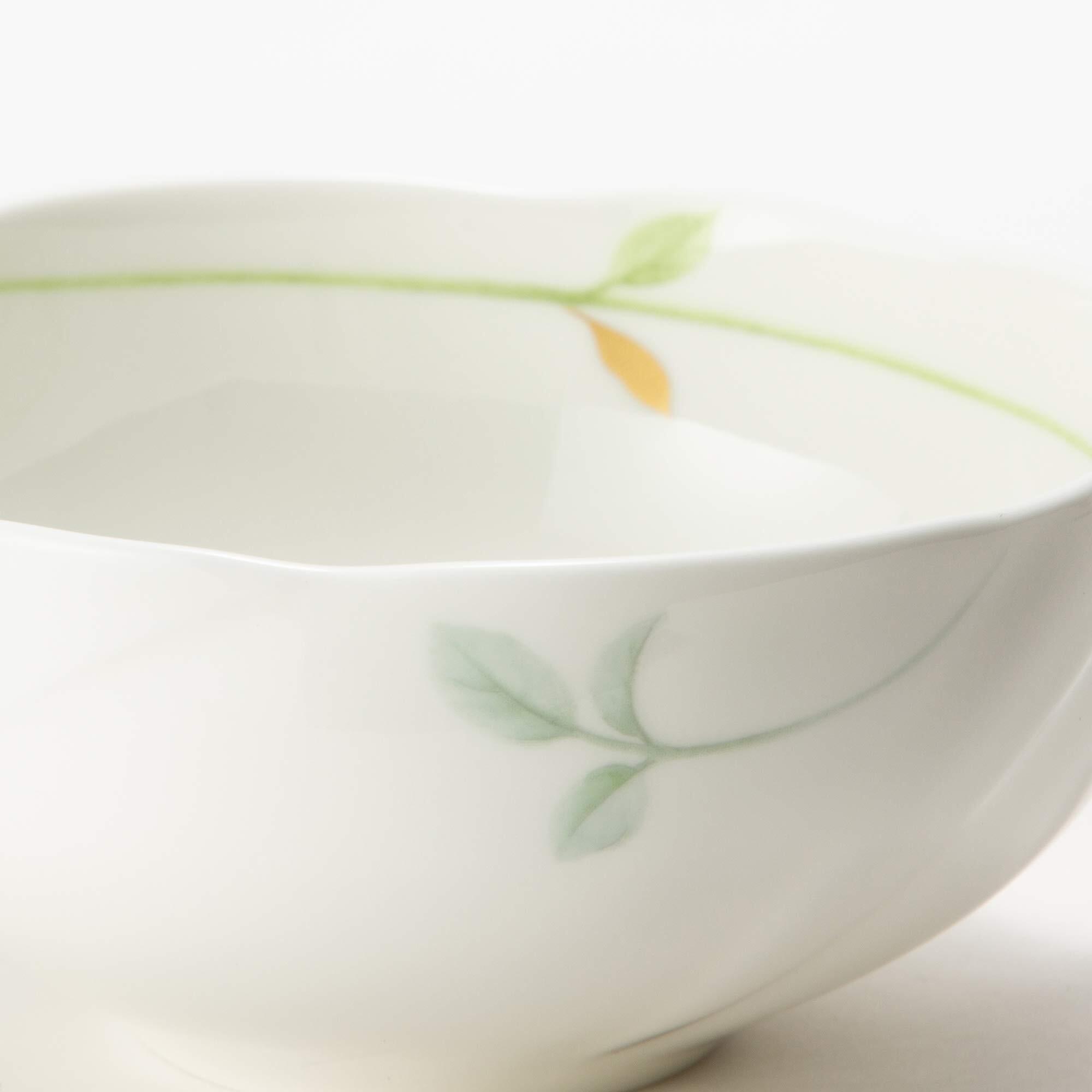 フリルのような優美なレリーフにバーブの淡いグリーンとポイントの金彩がさわやかなレモンバームシリーズ。
