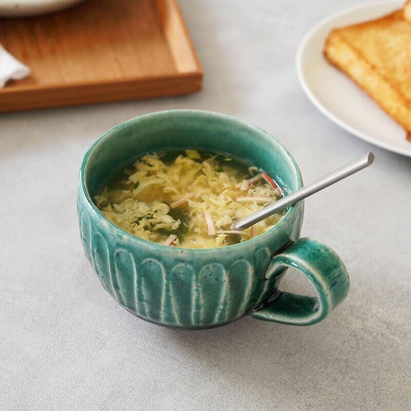 EAST table(イーストテーブル)スープカップ 350cc しのぎ 陶器 貫入青釉 日本製 レンジ対応 食洗機対応 58-001-02