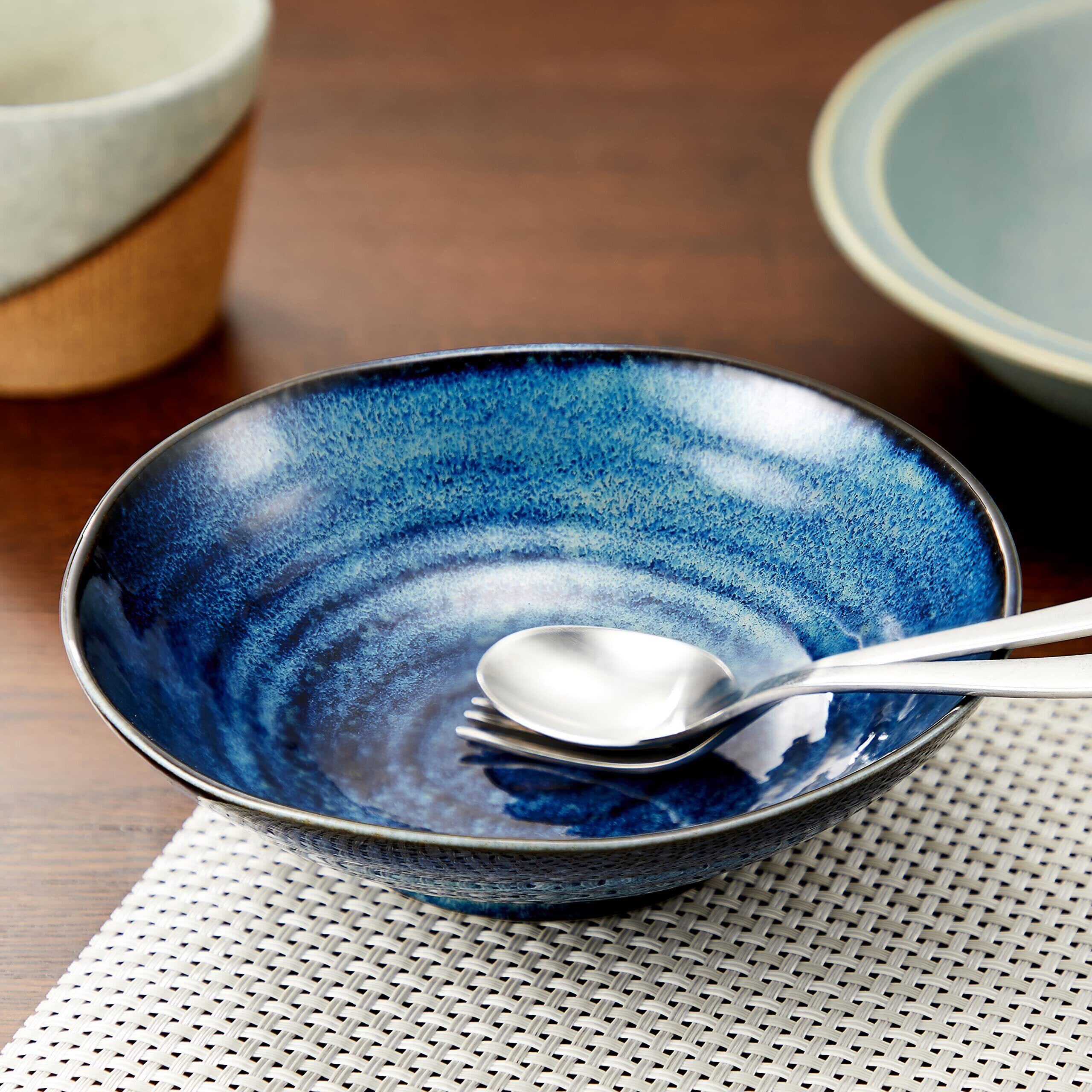 美濃焼 窯変 煮物鉢 中鉢 サラダボウル 皿 深皿 器 直径約17×深さ4.8cm 電子レンジ 食洗機対応 紺色 ネイビー 日本製 133-60206