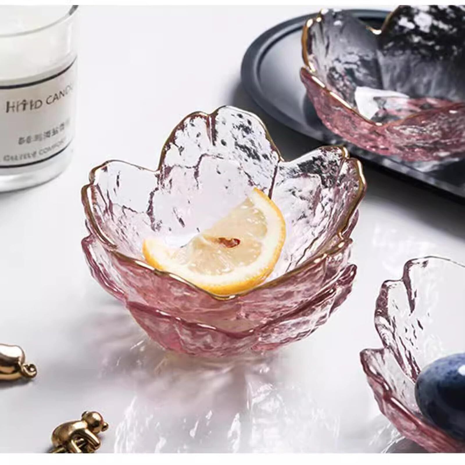 6個セット桜 ガラス ボウル デザート アイスクリーム さな ディップ ソース プレート小鉢(ピンク-プノンペン)
