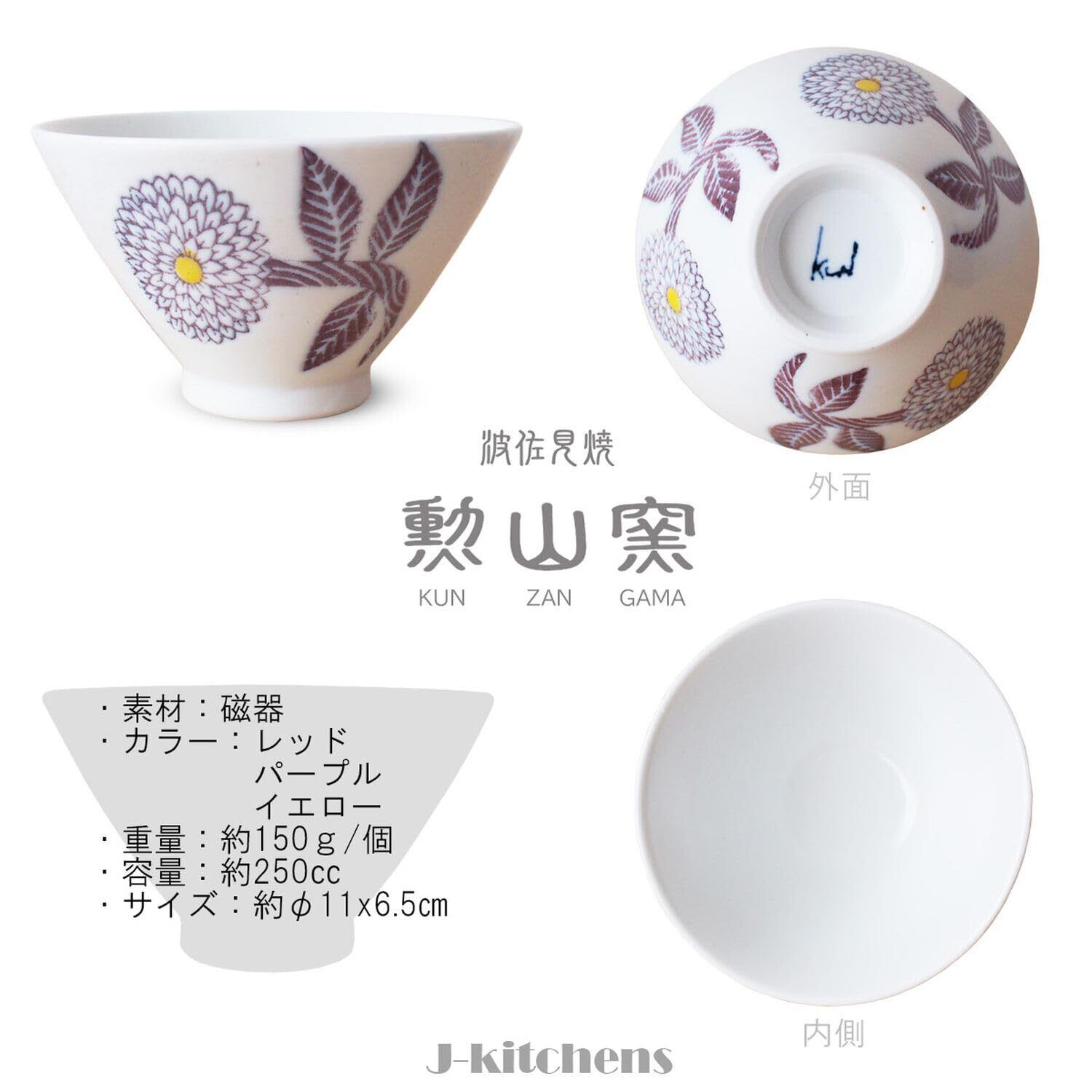 サイズ(約):直径11x高さ6.5cm 容量(約):250cc ・重量(約):150g 材質:磁器(食器洗い機使用可能、食器乾燥機使用可能)、電子レンジ:電子レンジ対応
