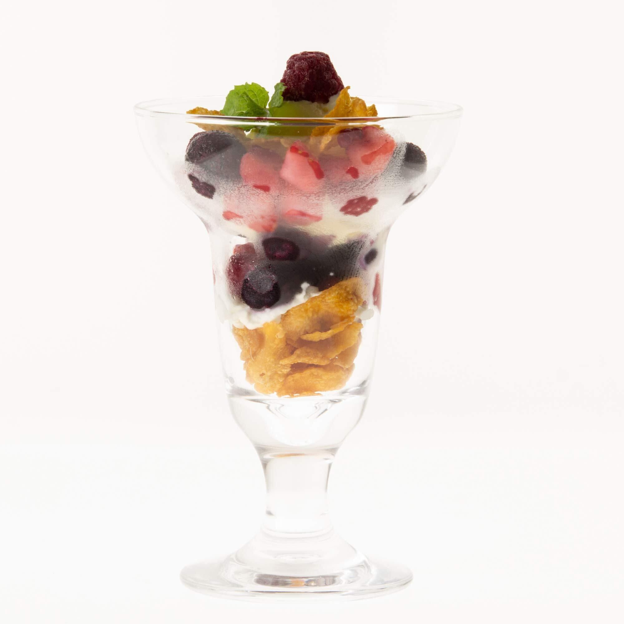 サイズ:パフェ 235ml | パターン(種類):1個 より ●美しい透明度を保持したファインクリアー商品●ガラスの透明感がデザートを引き立てる