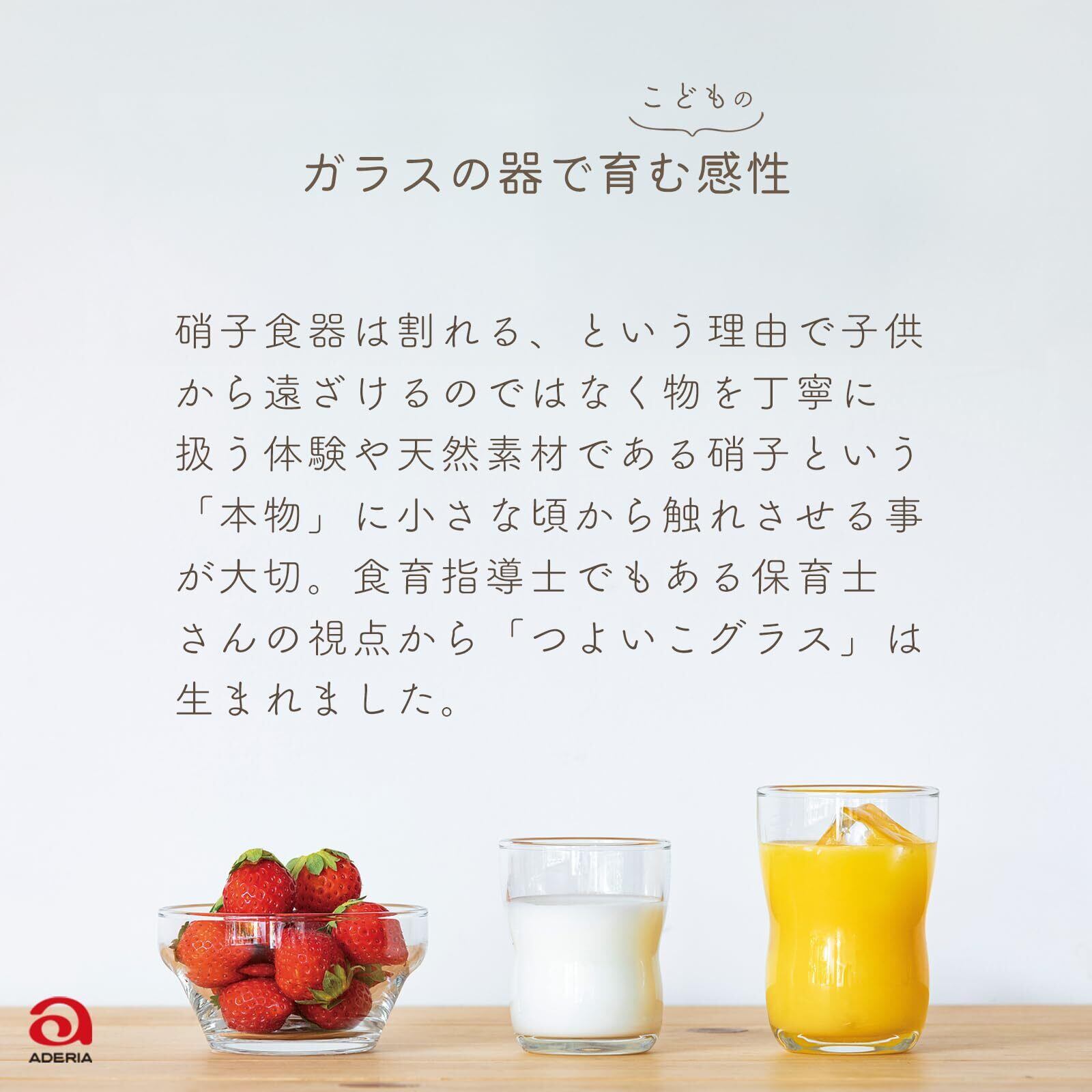 アデリア(ADERIA) 割れにくい 子供用 ガラス コップ グラス 持ちやすい 食育 キッズ ジュニア 園児 幼児 保育園 小学生 食器 飲み物 透明 丈夫 安全 飲み口 丸形 手のひら 小さめ 扱いやすい 家庭用