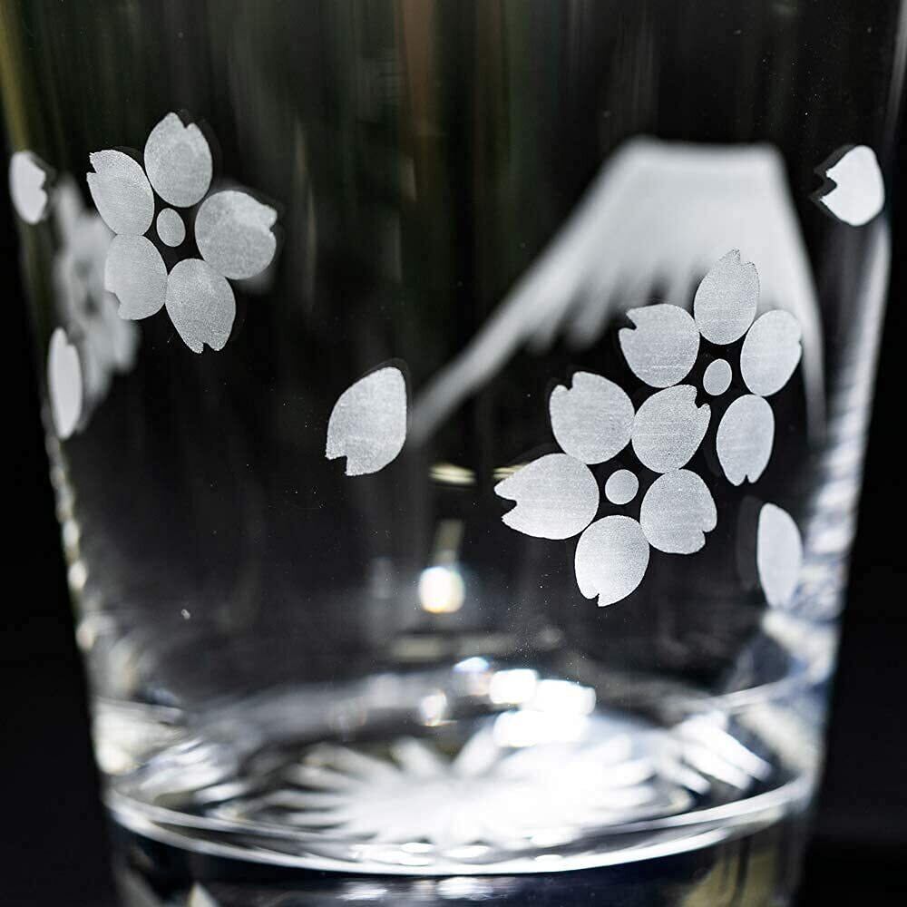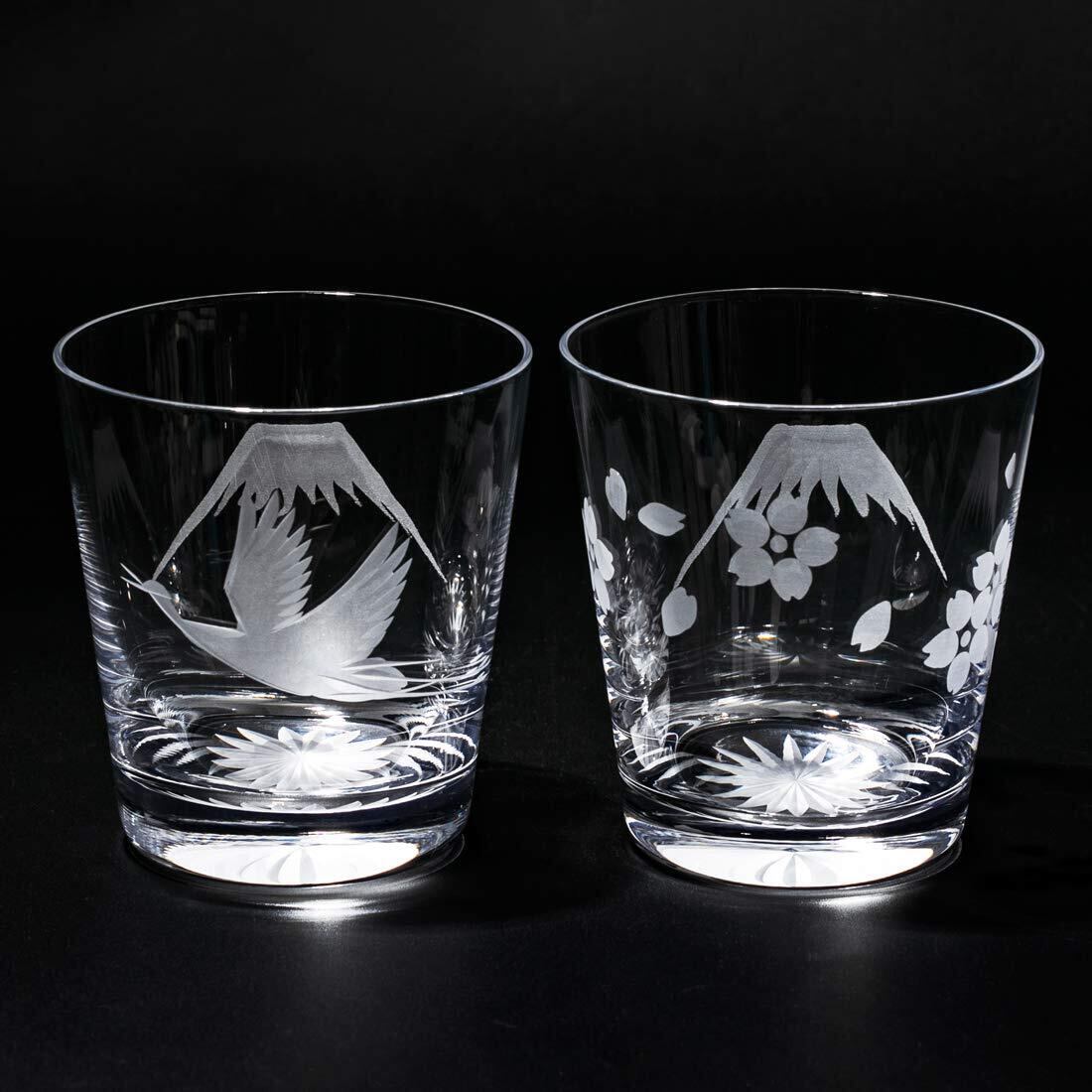 【数量限定】江戸切子 富士山に鶴・桜 オールドグラス ペア TB0036-32/0036-33 化粧箱入り 日本製