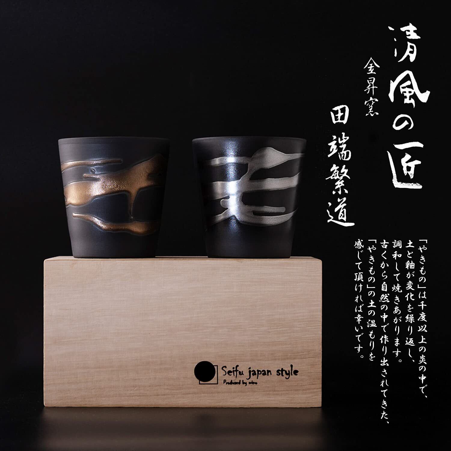 【2022最新】初任給 プレゼント 金銀流し ロックカップペア 夫婦焼酎カップ 湯飲み 木箱入り 贈り物 就職 感謝 御礼 ギフト 包装済み 金昇窯焼 陶器 初任給ギフト (T-1813)