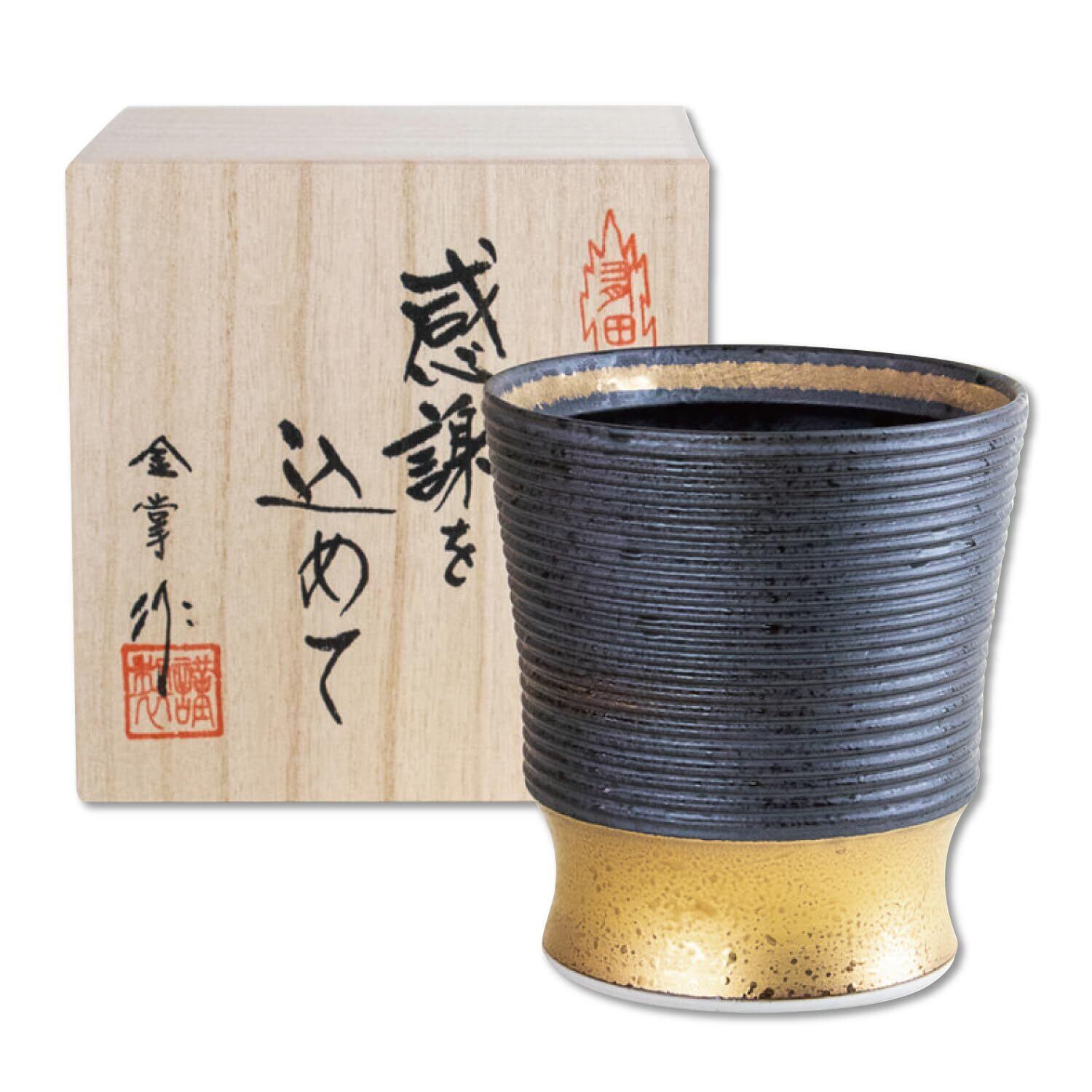 【在庫処分】退職祝い 男性 プレゼント 焼酎グラス 感謝を込めた退職ギフト 有田焼 感謝の木箱入り ボーダー 金