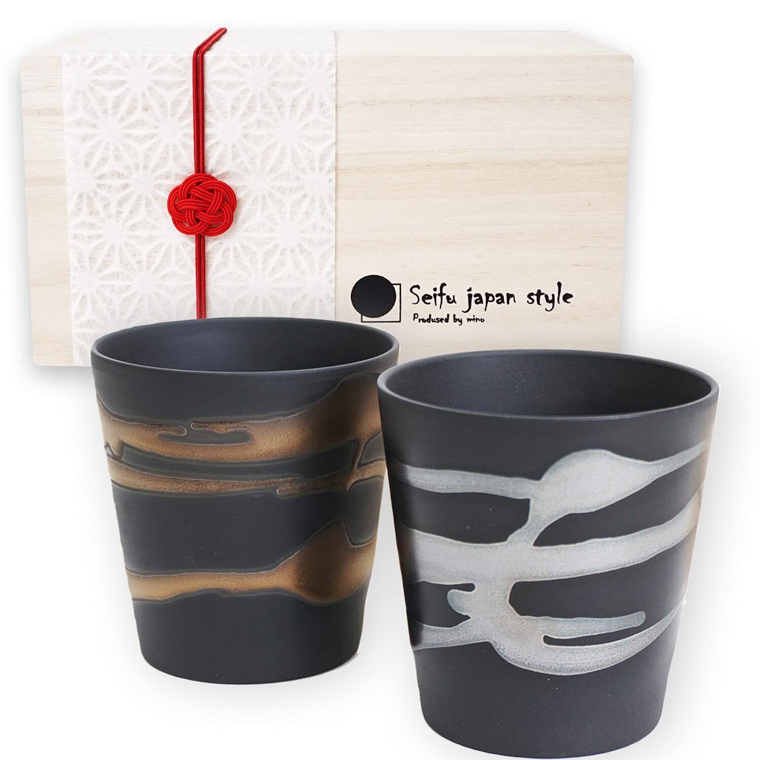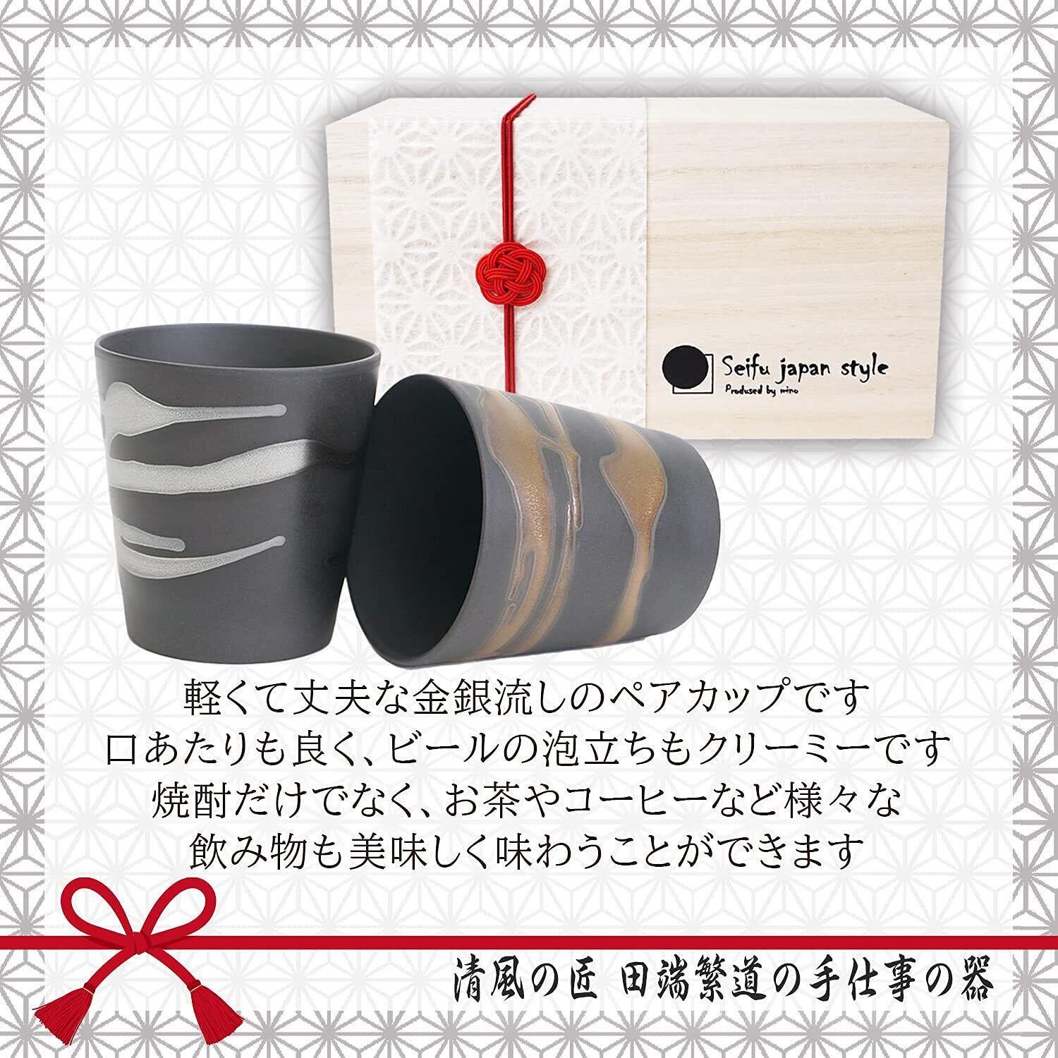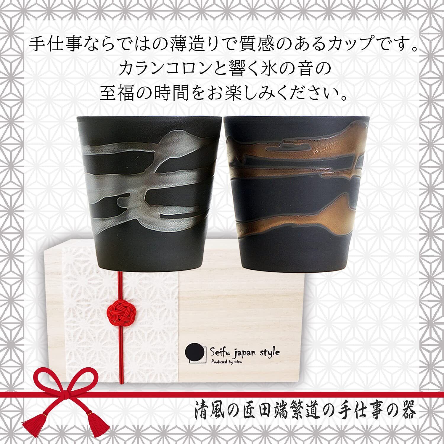 【特価セール】誕生日 プレゼント 結婚祝い 金銀流し ロックカップペア 夫婦焼酎カップ 湯飲み 木箱入り 包装済み 結婚祝い 金昇窯焼 陶器 (T-1813)