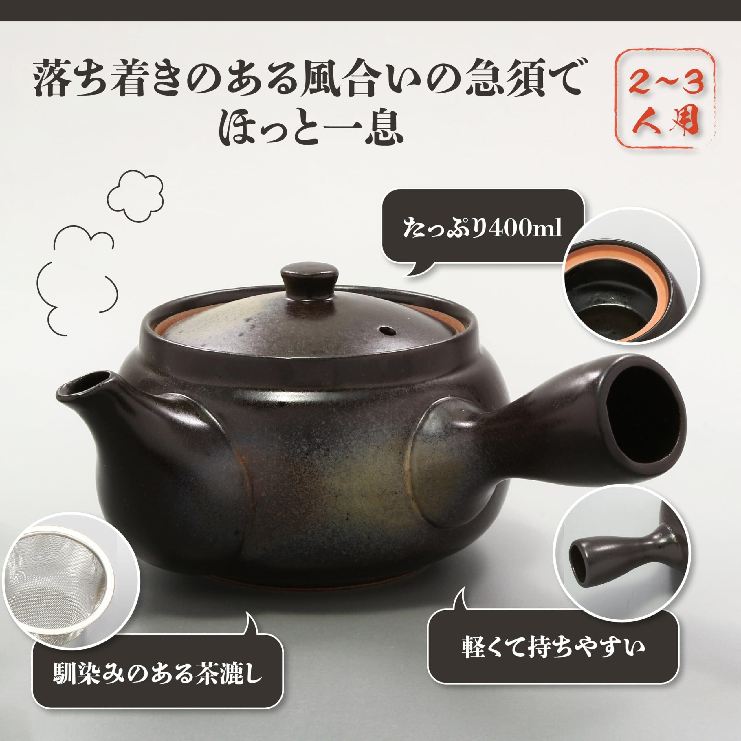 【新春セール】美濃焼 たっぷり 注げる 大きめ 急須 容量約400ml 2~3人用 備前風 茶色 ブラウン 無地 陶器 日本製 500-38