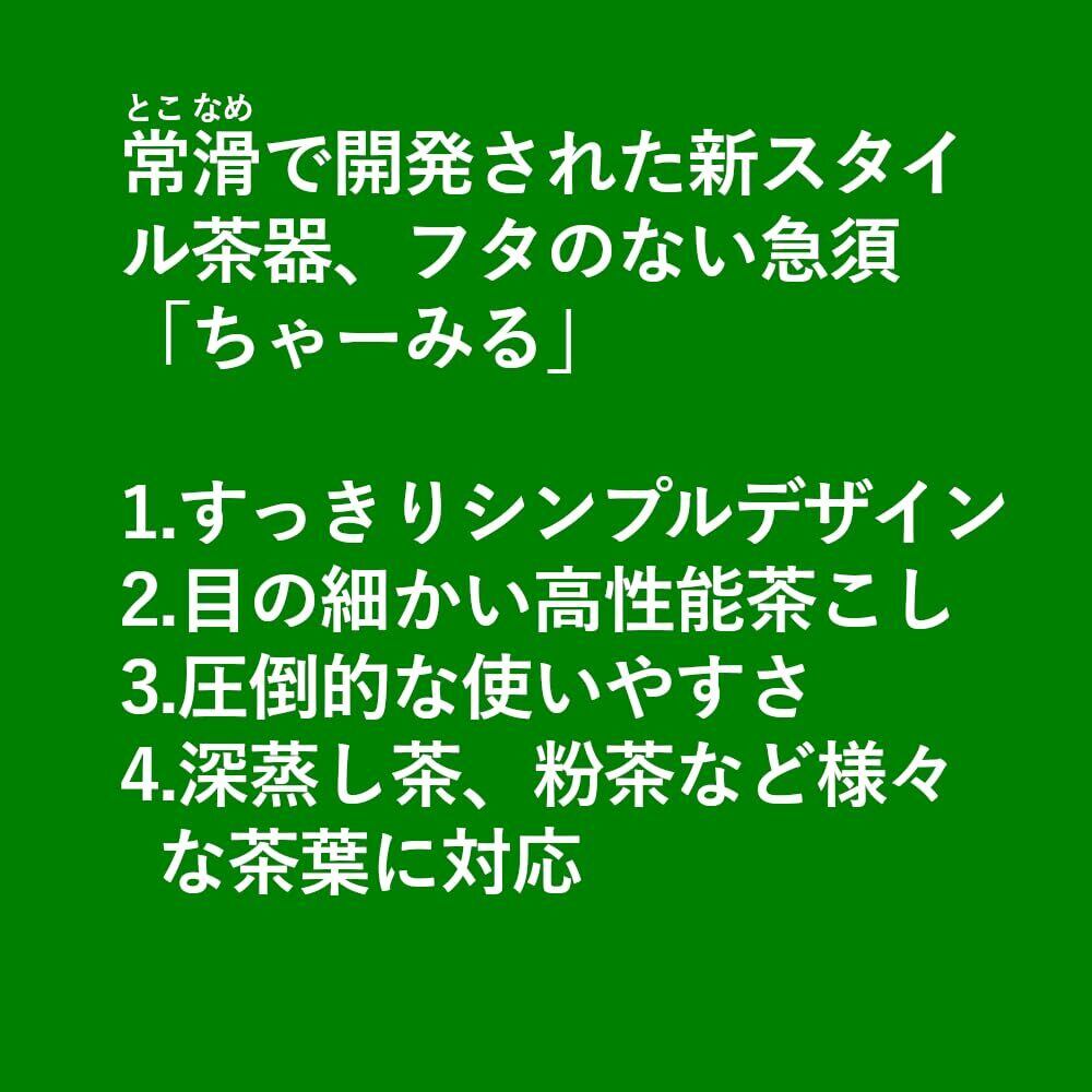 常滑で「ちゃーみる」と呼ばれるフタ無し急須。深蒸し茶にも対応の高性能、片手で楽々使えます。持ちやすさ使いやすさを追求した機能型急須。少し長めに設計された持ち手、茶葉を取り出しやすく茶湯がこぼれにくい構造です。慣れてくると意外に快適、用途の広い「フタ無し急須」。冷茶・水出し茶用急須としてもおススメします。