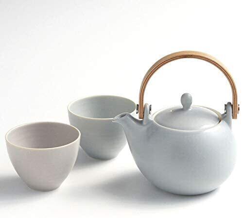 LOLO | 急須 | ギフトセット 灰 | 日本製 | ギフト| 陶器 | 和食器 | 受け皿 | (ギフトセット) (3点, 灰)