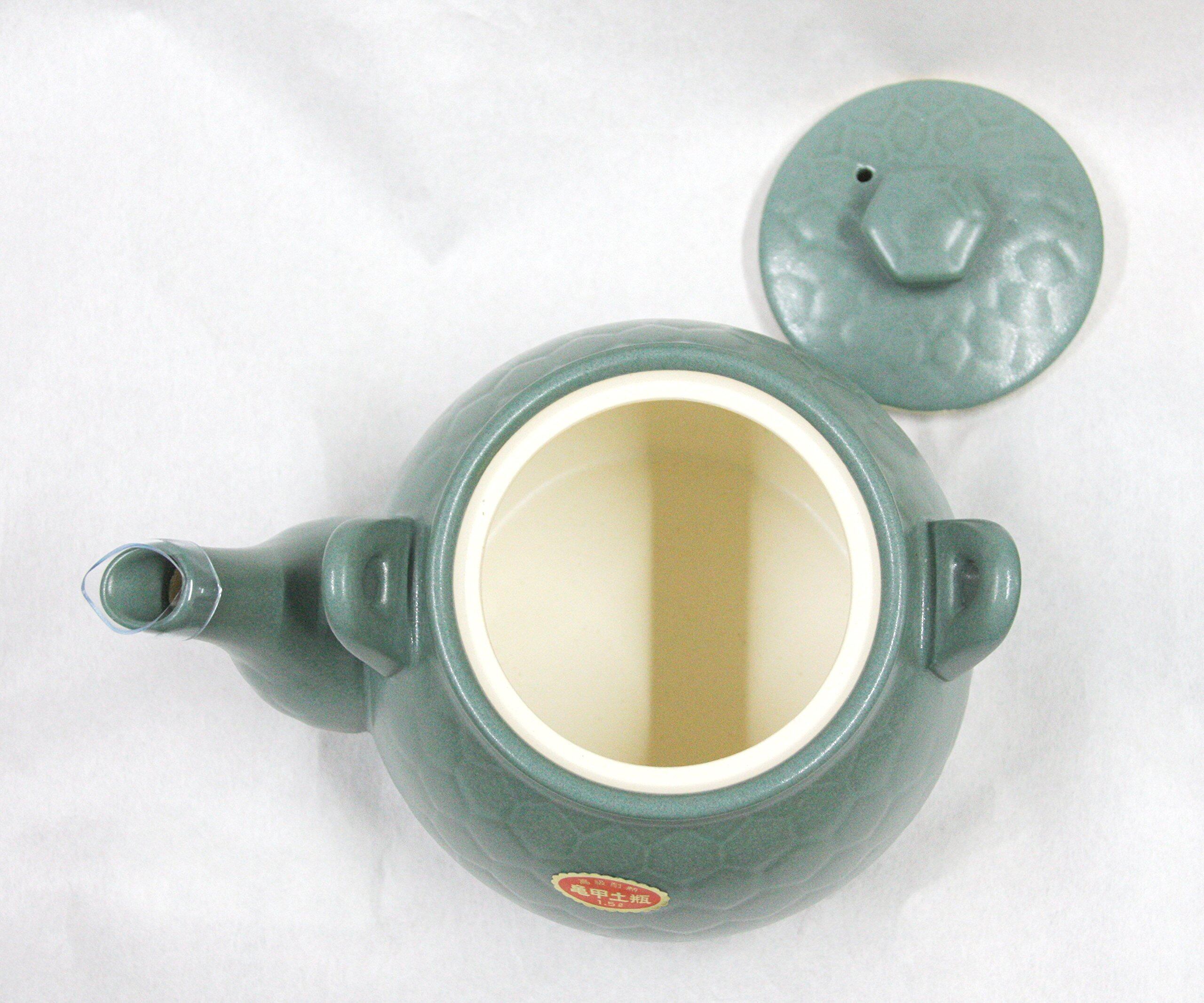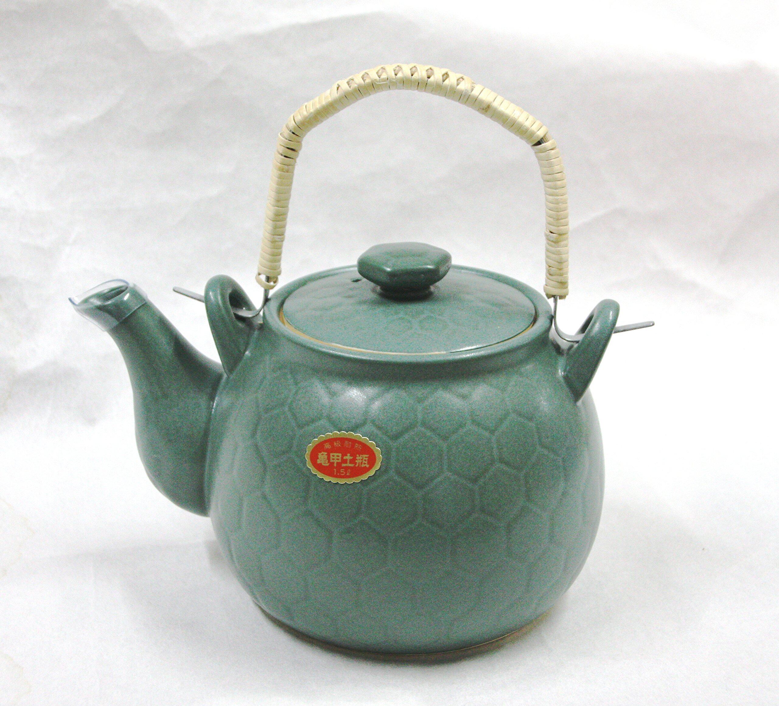 【在庫処分】煎じ用土びん 亀甲土瓶 (高級耐熱) 1.5リットル 緑色