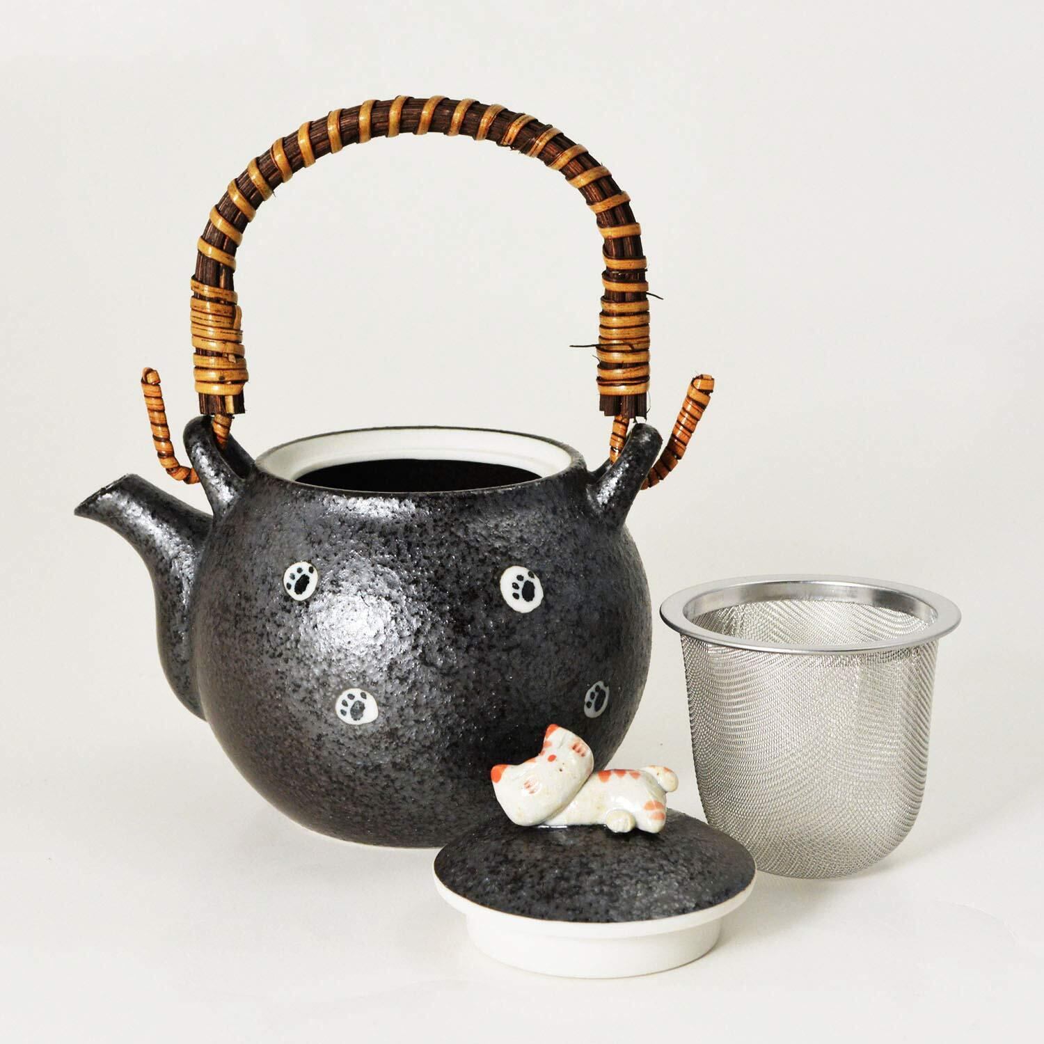 美濃焼 江戸屋 おやすみキャット 土瓶 E-00208 ブラック