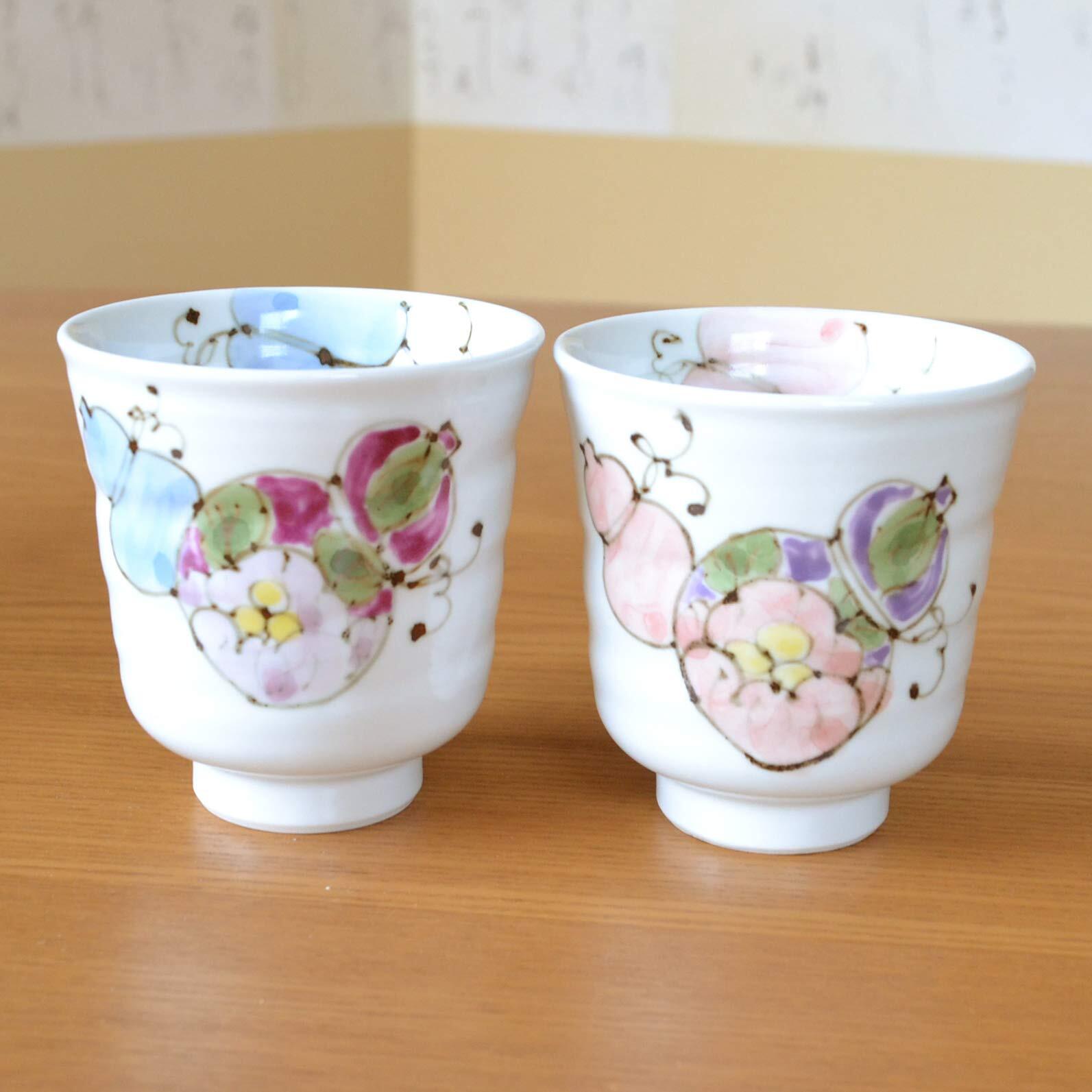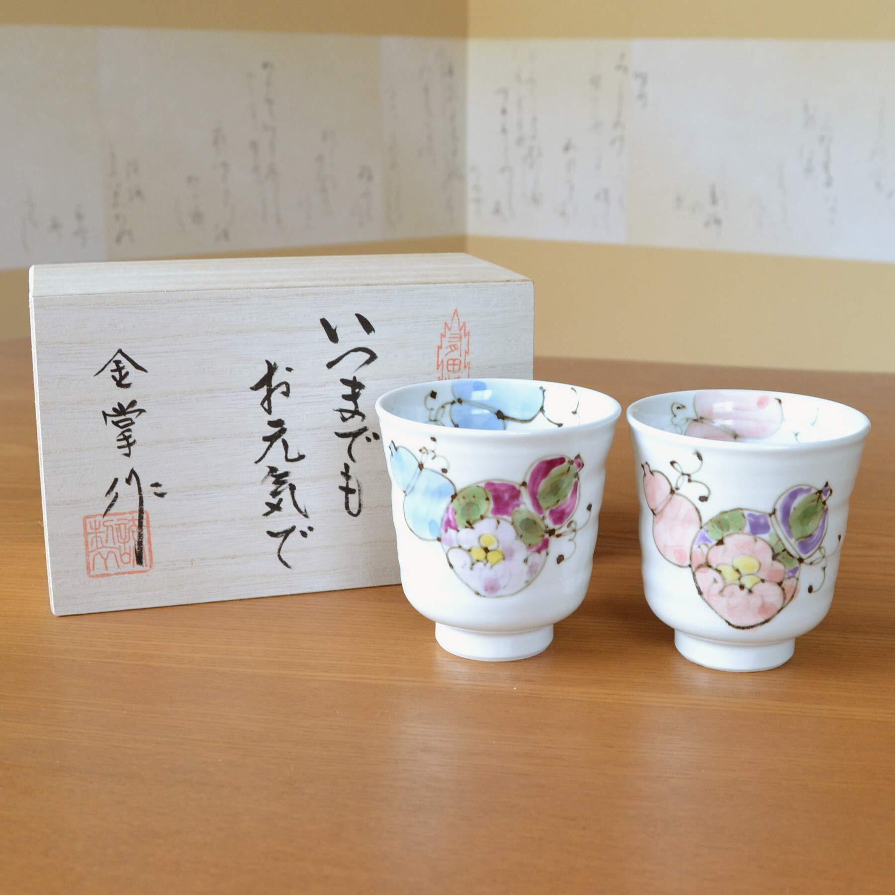 傘寿祝い 夫婦湯呑 無病息災を願った縁起物ギフト 有田焼 湯呑み ペア のし・メッセージカード付き 木箱入り 花六瓢