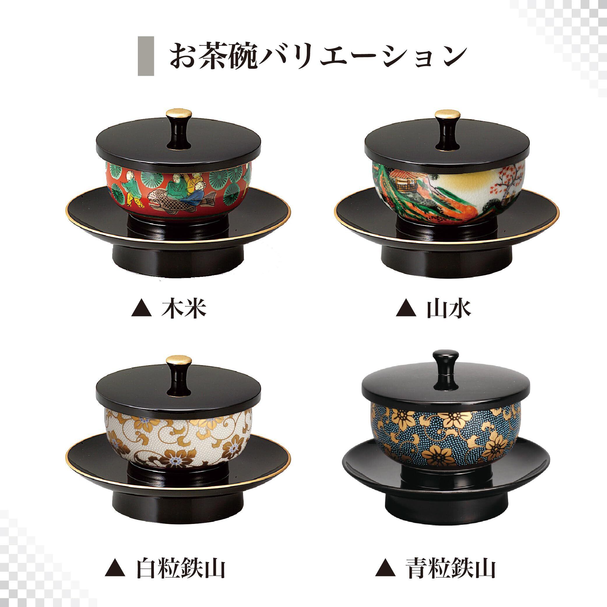 サンメニー 本格 九谷焼 茶碗 付 茶台 茶托 山中漆器 日本製 お手軽 仏具 お盆 法事 に 定番 仏具 おちゃわん シンプル 供養 仏具 現代仏壇 お仏壇 仏具小物 4.2寸 黒 (フチ金) 青粒鉄仙 毎日のお供え お参りに 手元供養 ペット 供養 小さな スペース にも 仏具 神具 お盆 法事 お参り に 幅12.5×長さ12.5×高さ9.5cm