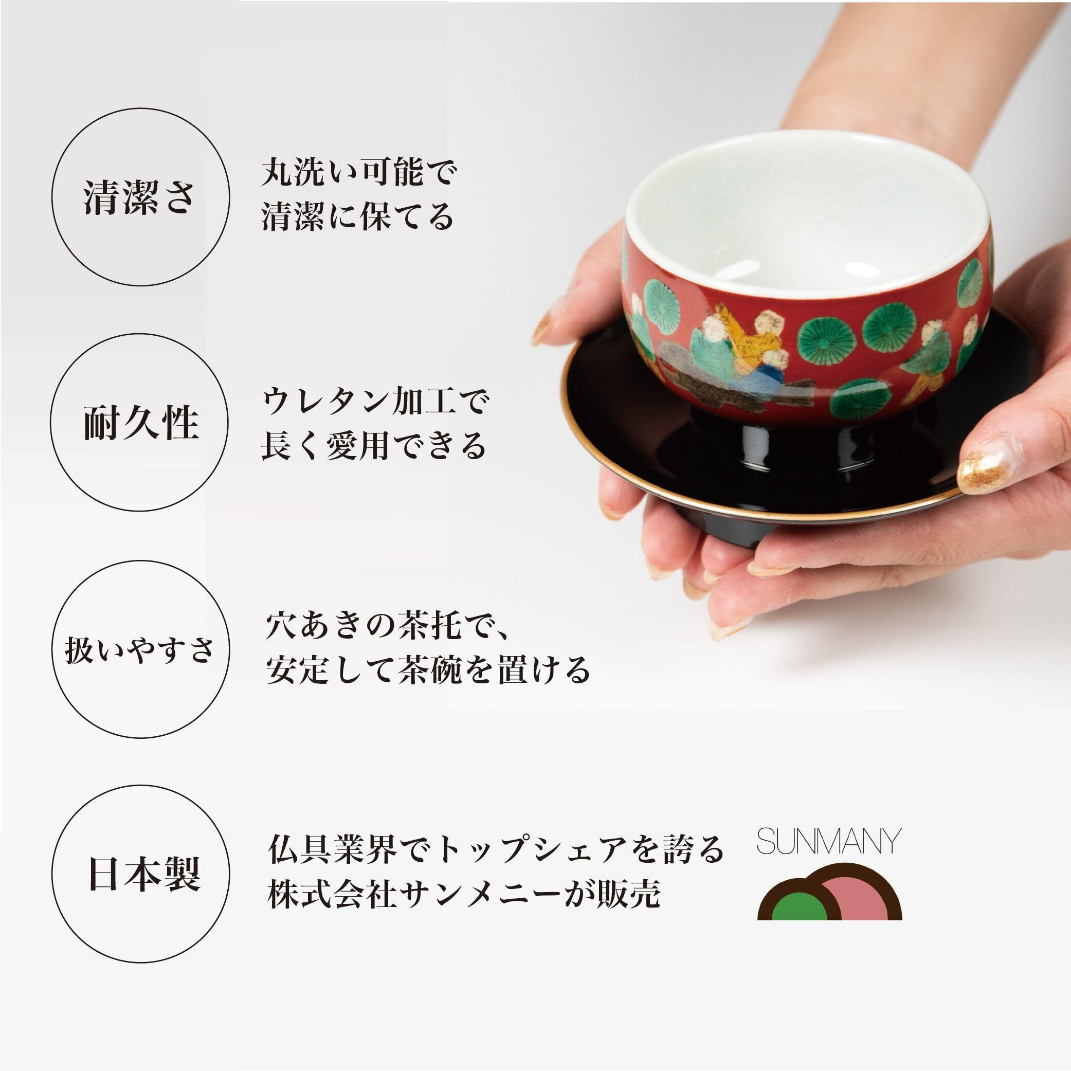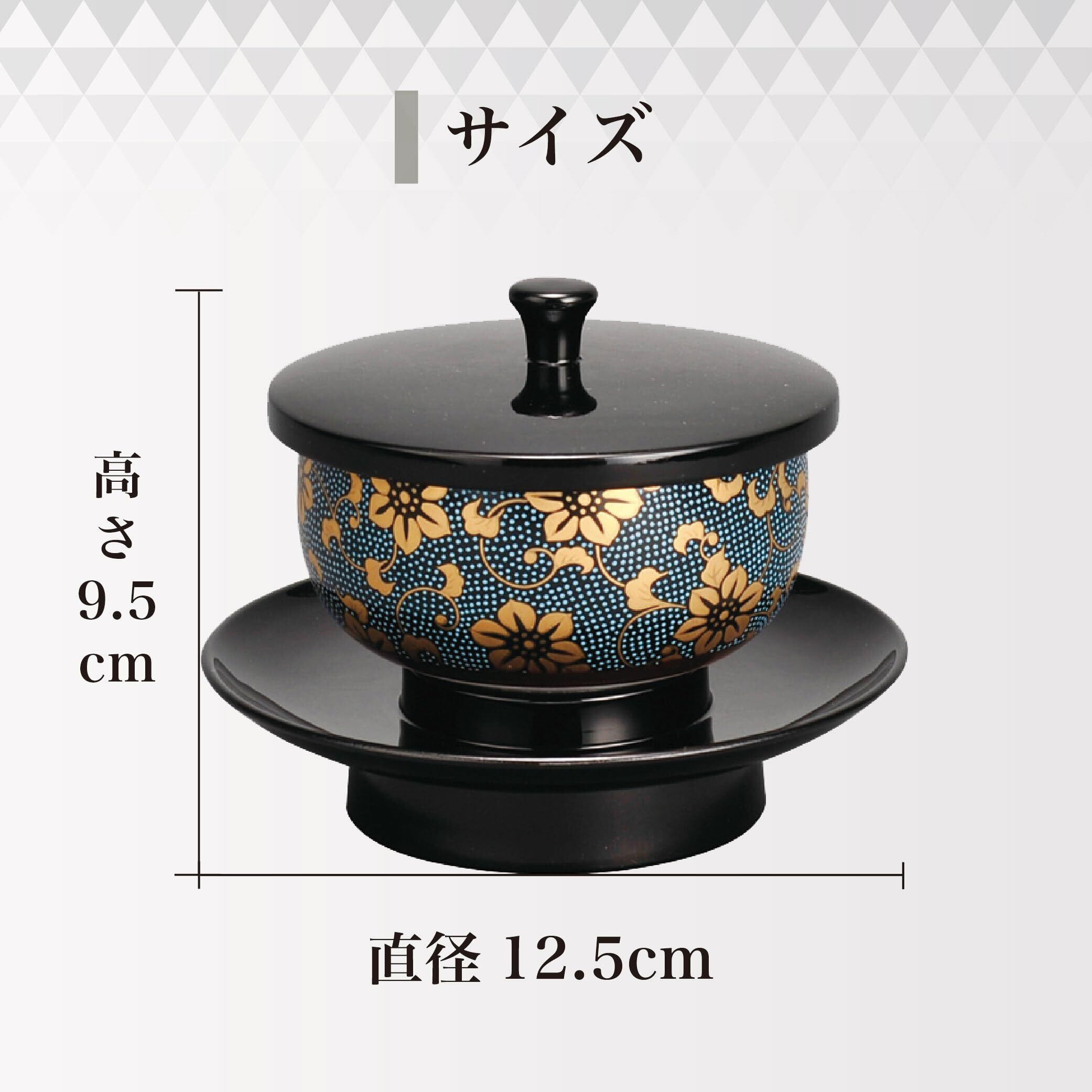 【新春セール】サンメニー 本格 九谷焼 茶碗 付 茶台 茶托 山中漆器 日本製 お手軽 仏具 お盆 法事 に 定番 仏具 おちゃわん シンプル 供養 仏具 現代仏壇 お仏壇 仏具小物 4.2寸 黒 (フチ金) 青粒鉄仙 毎日のお供え お参りに 手元供養 ペット 供養 小さな スペース にも 仏具 神具 お盆 法事 お参り に 幅12.5×長さ12.5×高さ9.5cm
