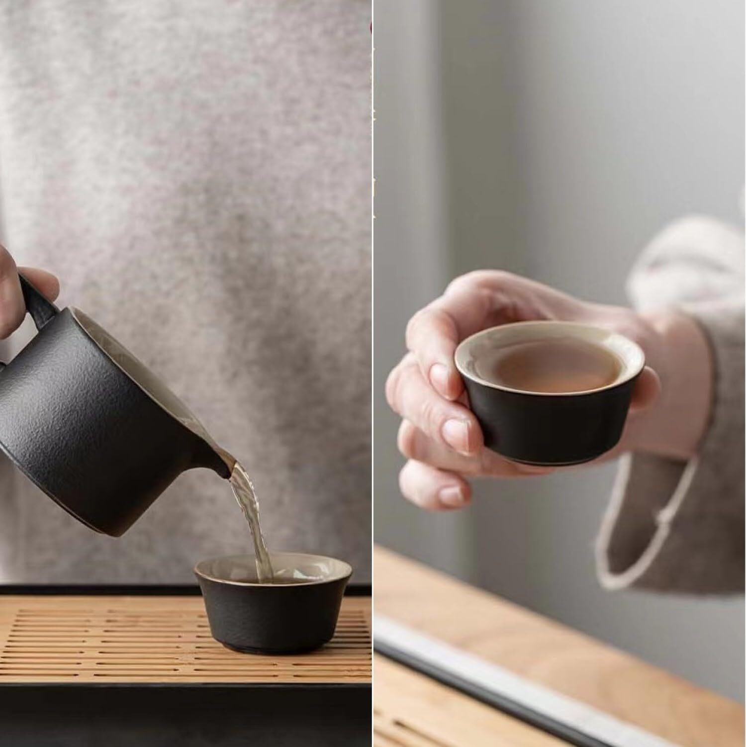 【携帯式セット】急須と湯呑みは一緒に保存でき、防塵もできます。キャリングケースに収納され、持ち運びが便利です。外出先でも自由に好きなお茶を楽しめます。日本茶でも中国茶でもOK!