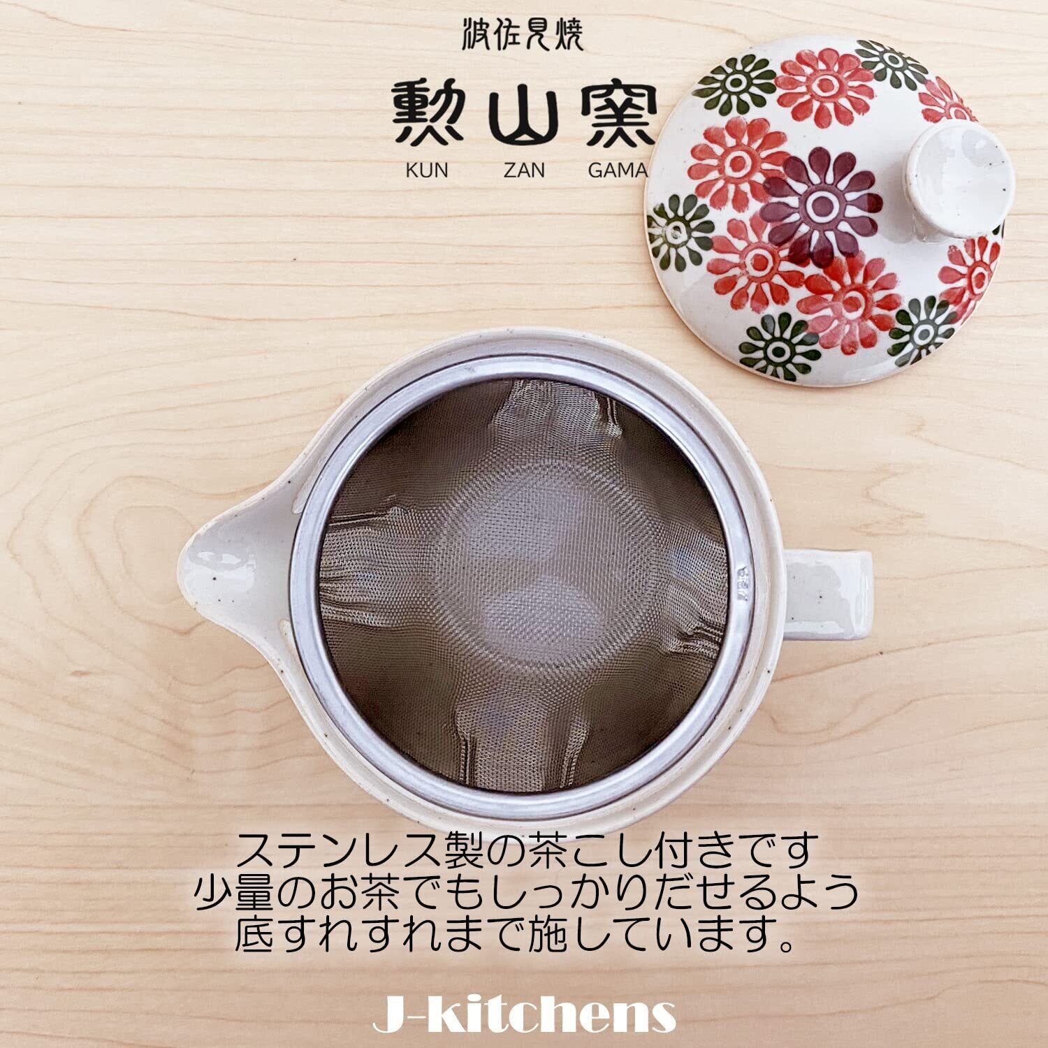 【数量限定】J-kitchens 勲山窯 急須セット 波佐見焼 日本製 (急須 ペア湯呑み おしゃれ 茶器 セット) 240cc 140cc 1人用 ~ 2人用 茶こし付き 花小紋 レッド