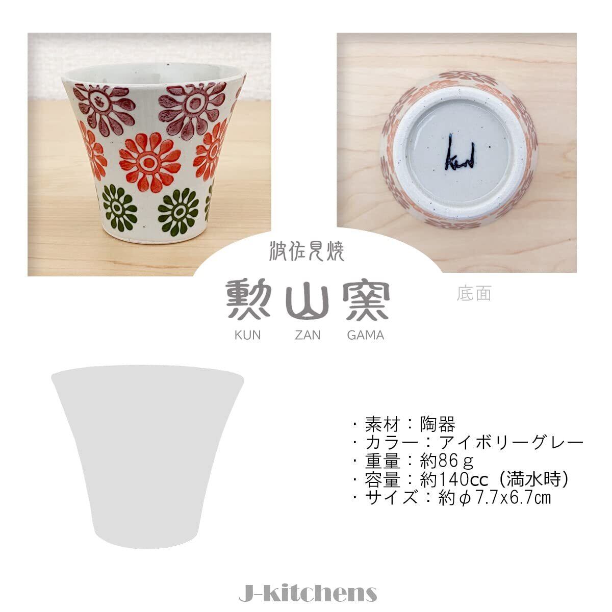 J-kitchens 勲山窯 急須セット 波佐見焼 日本製 (急須 ペア湯呑み おしゃれ 茶器 セット) 240cc 140cc 1人用 ~ 2人用 茶こし付き 花小紋 レッド