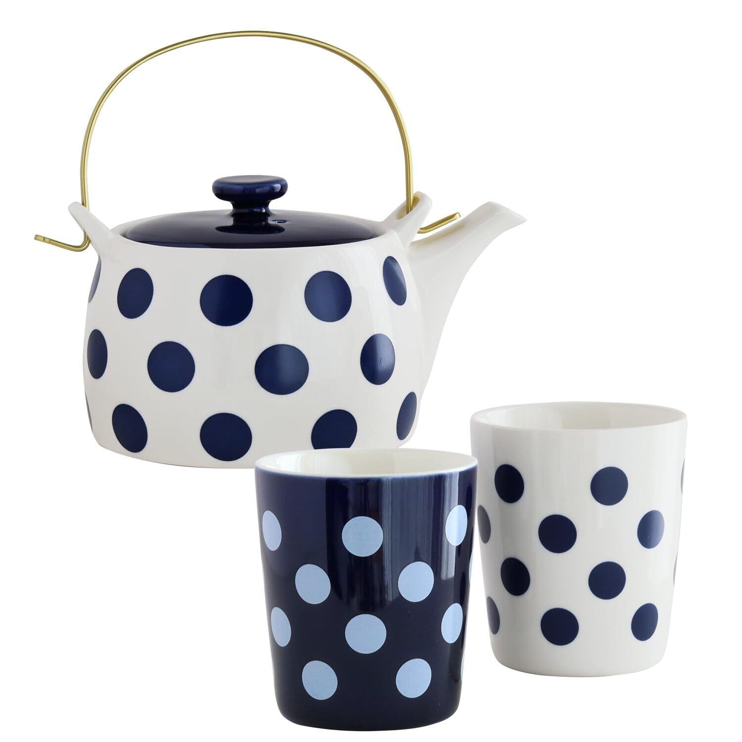 Dolce duo 急須 湯呑み セット (3点セット) コップ 湯のみ カップ 茶こし付 ティーセット ドット柄 水玉 ギフトセット 誕生日プレゼント DAM-357