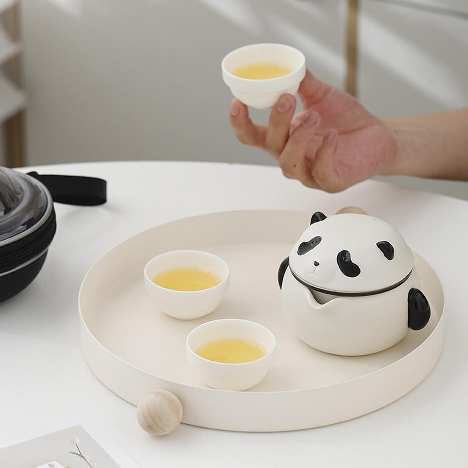 茶器セット かわいいパンダ 3人用 急須セット 中国茶器 コップ 収納バッグ付き陶器湯呑みセット 旅行ティーセット 携帯茶道具