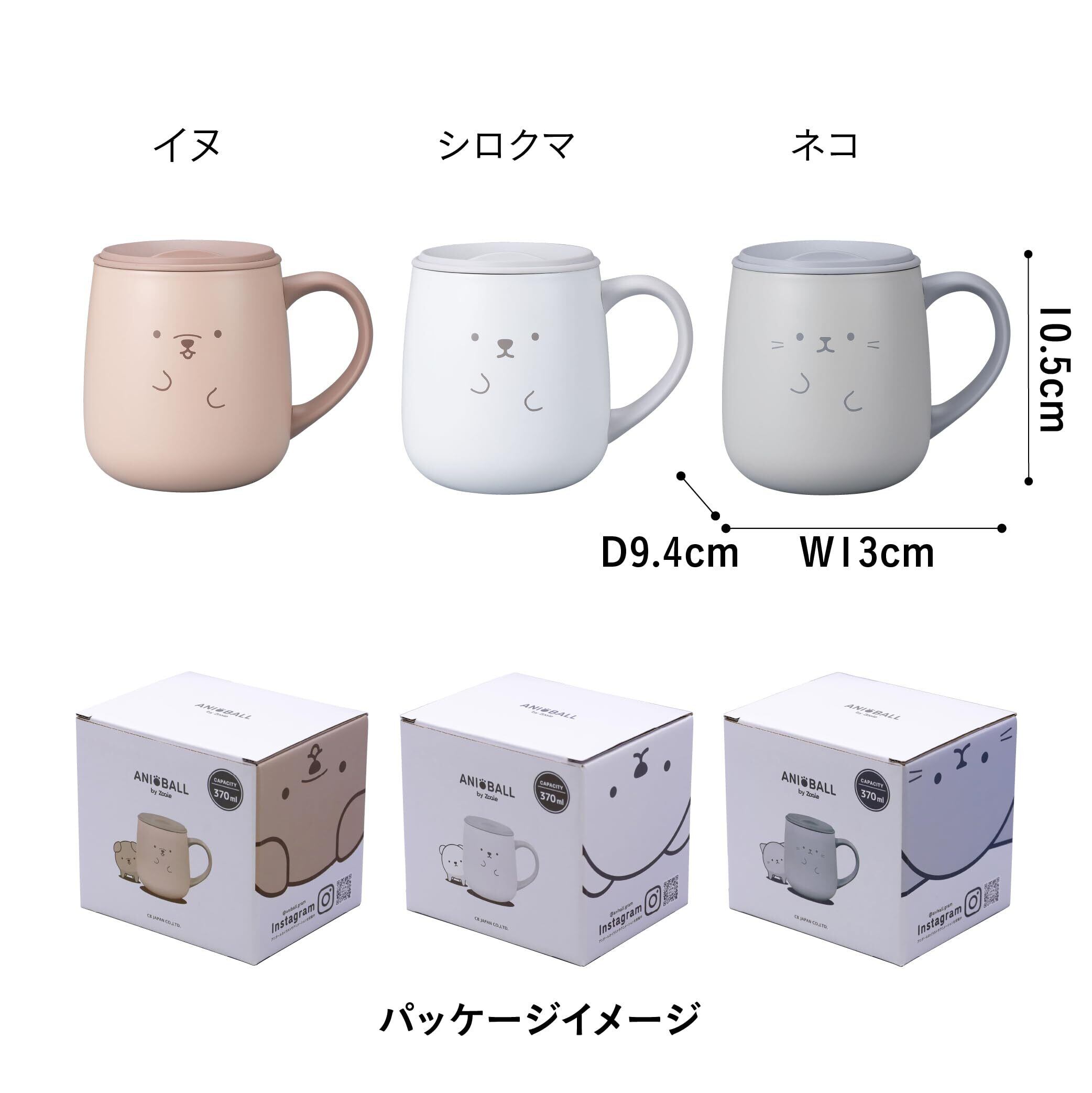 【新着商品】シービージャパン ステンレスマグ スライド式フタ付き 真空断熱 2層構造 370ml 大きめハンドルで持ちやすい フタ付きステンレス保温マグ ANIBALL