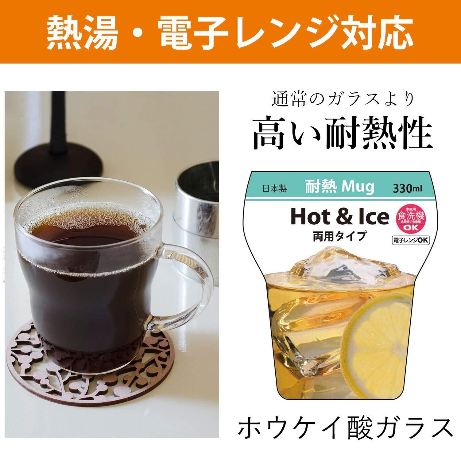 熱湯、電子レンジで使用できる耐熱マグカップ。