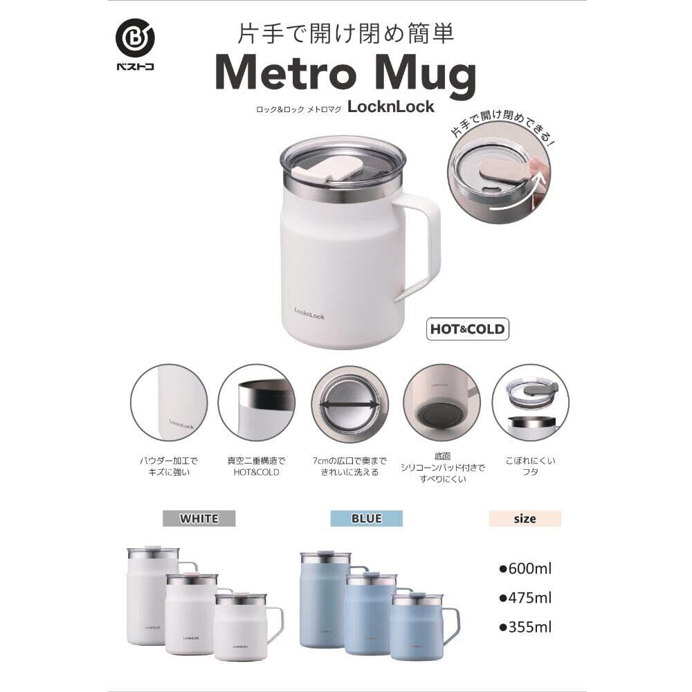 【数量限定】ベストコ マグカップ ふた付き 保温 保冷 ステンレス 600ml 大きめ ブルー LHC4282OBLU ロック&ロック メトロ