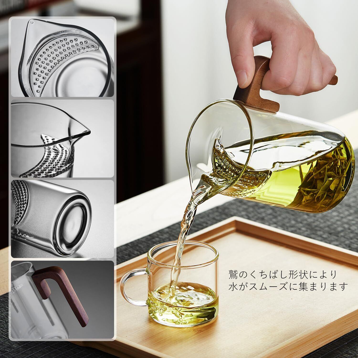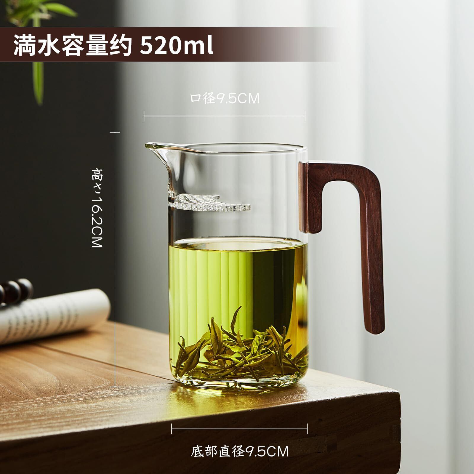 ポカロティー ティーカップ 耐熱ガラス 茶海 悠然公道杯 520ml ホウケイ酸ガラス ピッチャー 耐熱温度差170度 カップ 取っ手付き 一体型茶こし付き